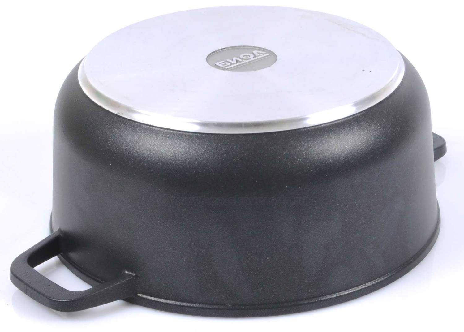 Кастрюля БИОЛ 26см/5л с крышкой-сковородой с антипригарным покрытием Greblon Биол Алюминиевая посуда Биол Рады предоставить Вашему внимаю кастрюли Биол в комплекте с крышкой-сковородой. Кастрюли выполнены из литого алюминия, что будет положительно сказываться на теплопроводности посуды, а толщина до 6 миллиметров на сохранения тепла длительное время. Цвет кастрюли черный внутри и снаружи - ухаживать за такими предметами будет очень легко. На дне