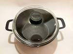 Отличительной особенностью данной сковороды является ее крышка, которая поставляется в комплекте. Это не просто крышка, а крышка-сковорода. Таким образом Вы платите за один предмет, а получаете сразу три: кастрюлю, крышку и сковороду!