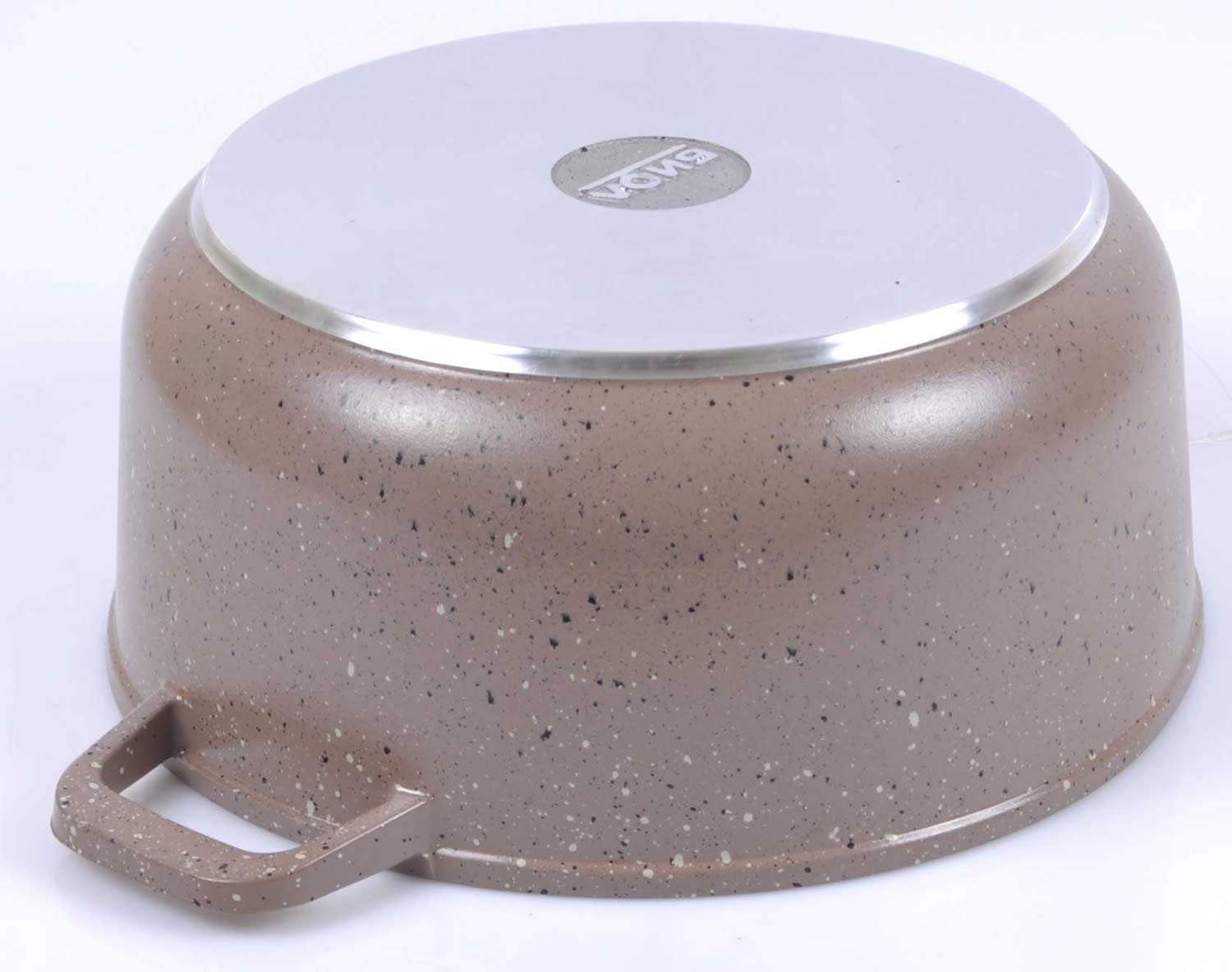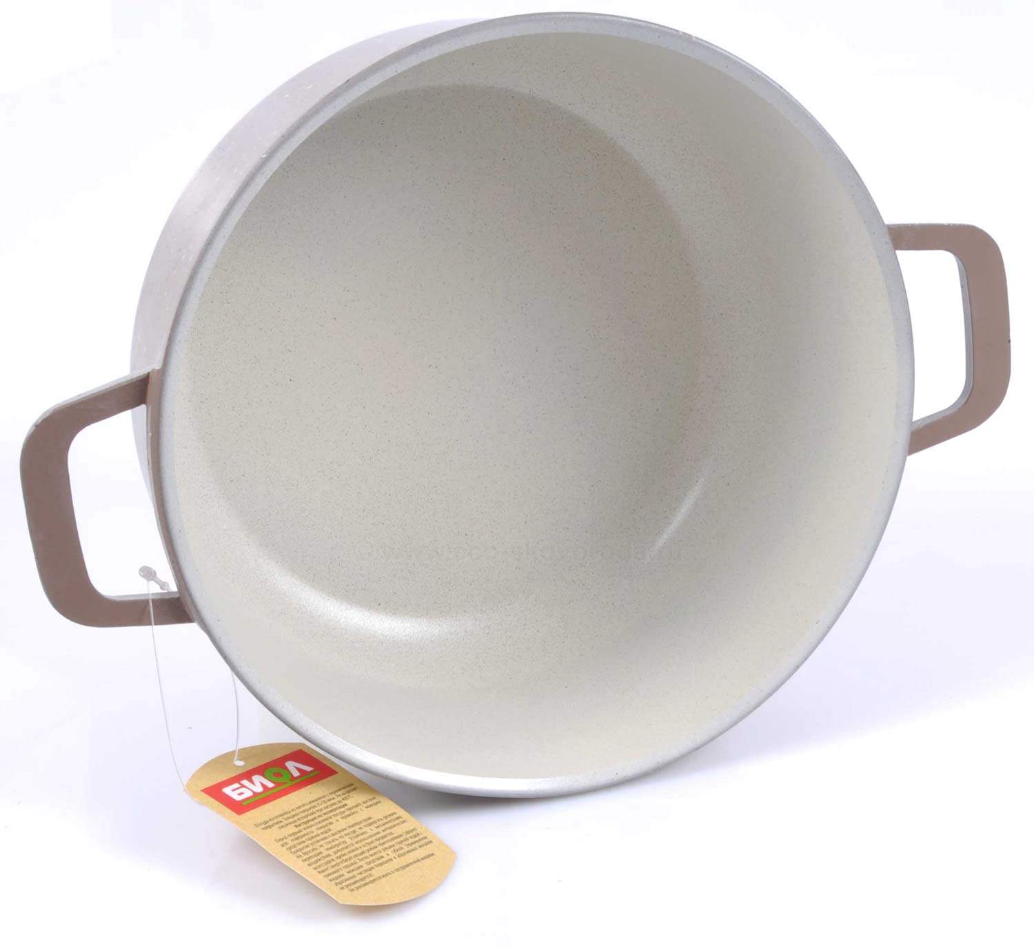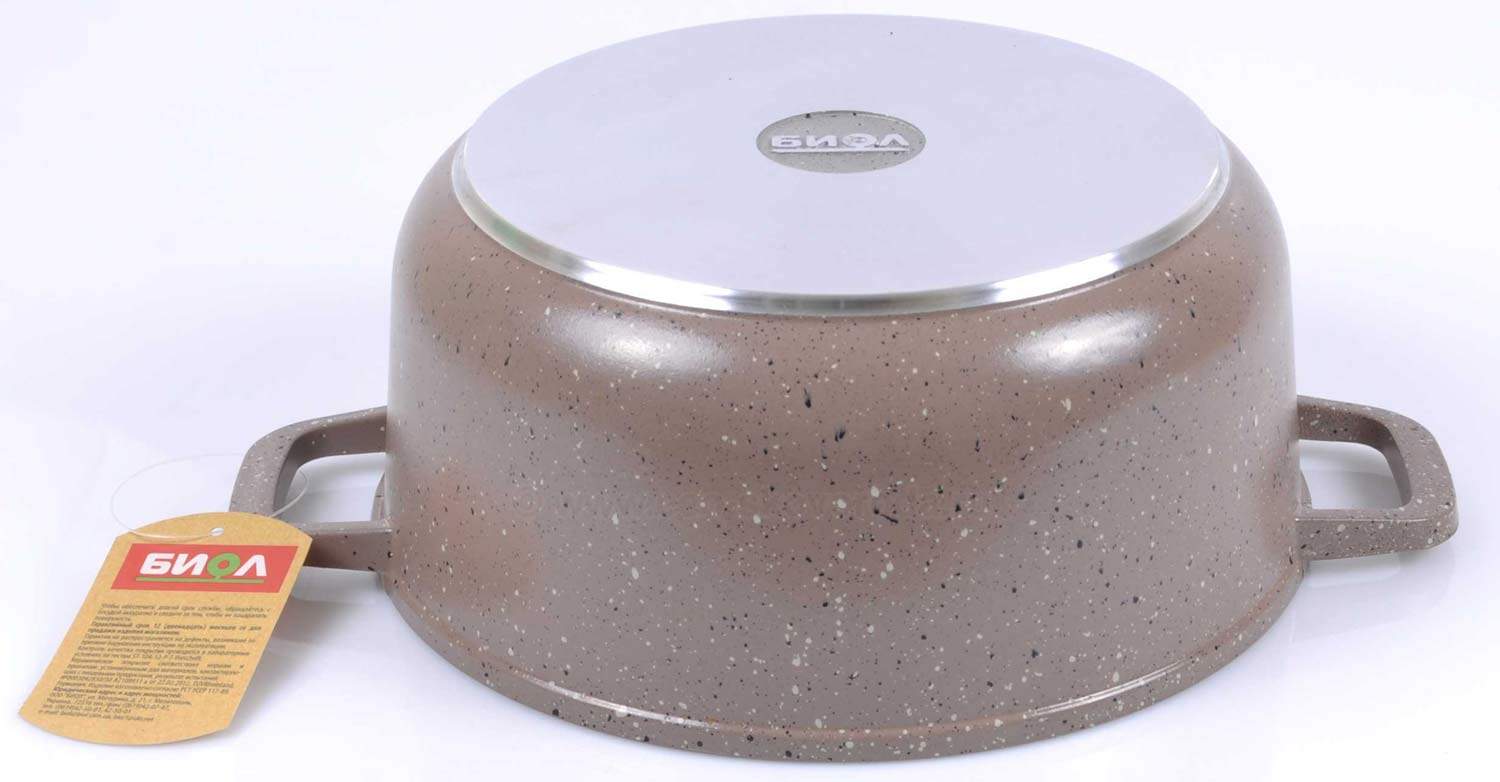 Кастрюля Биол серии Ар-Деко производится в Украине. Кастрюля выполнена из литого алюминия, обладает утолщенным дном толщиной до 6 миллиметров и толстыми стенками толщиной до 3,5 миллиметров. По бокам расположены две литые ручки, за счет чего кастрюлю можно использовать не только на плите, но и, если Вы решите что-то запечь, то и в духовке.