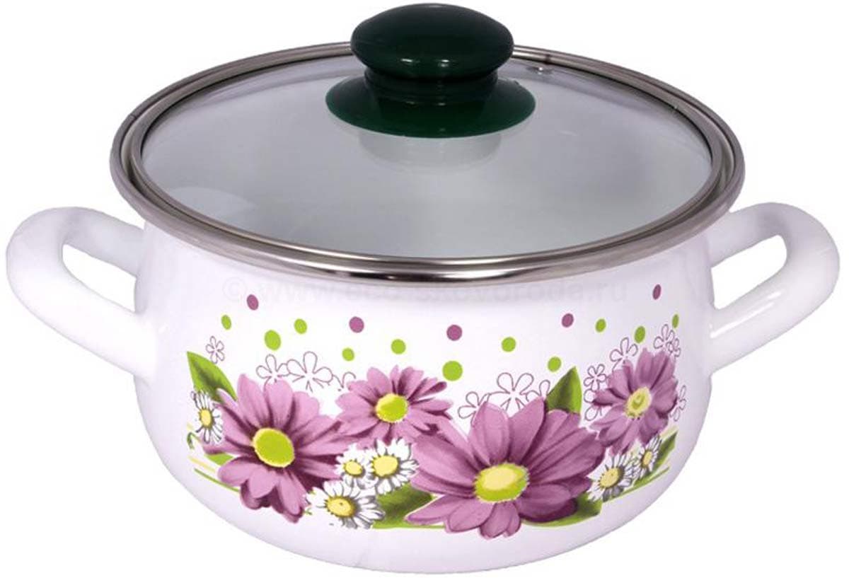 Кастрюля эмалированная 5,1л/22см INTEROS Розовые герберы