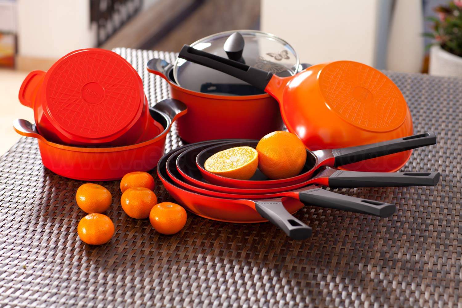 Коллекция посуды Frybest Orange производится в Южной Корее и обладает одним из самых качественных керамических покрытий - Ecolon. Отличительной особенностью большинства коллекций Frybest является использование ярких привлекательных цветов. Так и коллекция Orange (в переводе с англ. «апельсин») имеет оригинальный внешний вид, красно-оранжевые тона снаружи, и темное покрытие внутри, скрасят минуты пребывания за плитой в незабываемые мгновения радости. Вся серия имеет одинаковый внешний вид, не зависимо будет это сковорода или кастрюля, ковшик или сотейник, Вы всегда сможете собрать свою неповторимую коллекцию.