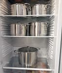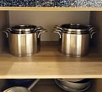 В процессе чистки посуды не пользуйтесь металлическими щетками и чистящими порошками! Это может испортить внешний вид кастрюль.