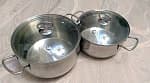 В процессе чистки посуды не пользуйтесь металлическими щетками и чистящими порошками! Это может испортить внешний вид кастрюль.