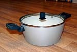 Сковороды и сотейники имеют толщину дна 5.5мм, толщину стенок 4мм. Средний вес изделий составляет 900гр.