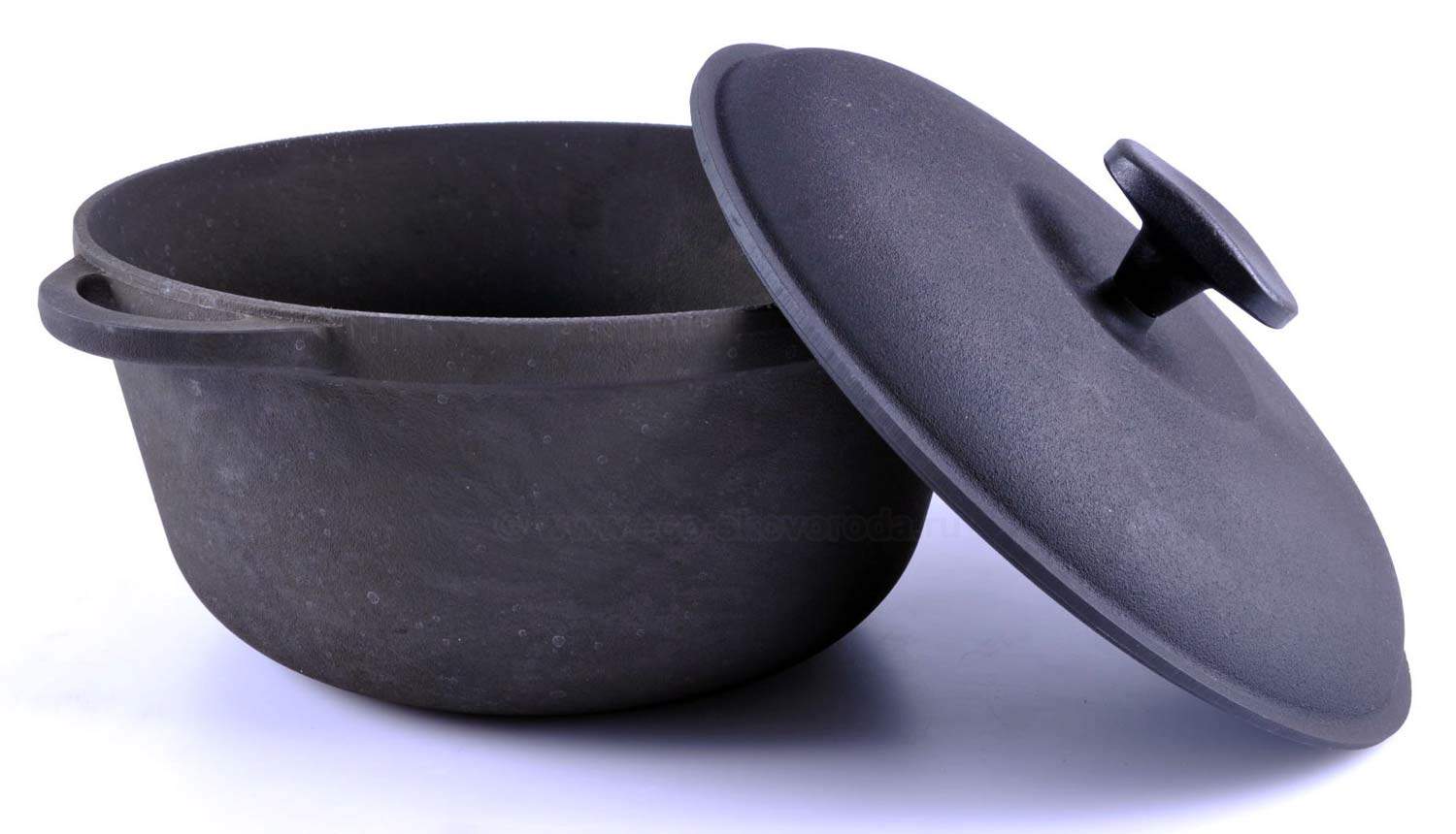 Не секрет, что наиболее удачным материалом при изготовлении посуды является чугун. И это действительно так. Чугун практически лишен недостатков. Чугун долговечен, экономичен, не боится перегрева, механических повреждений, отлично накапливает и удерживает тепло.