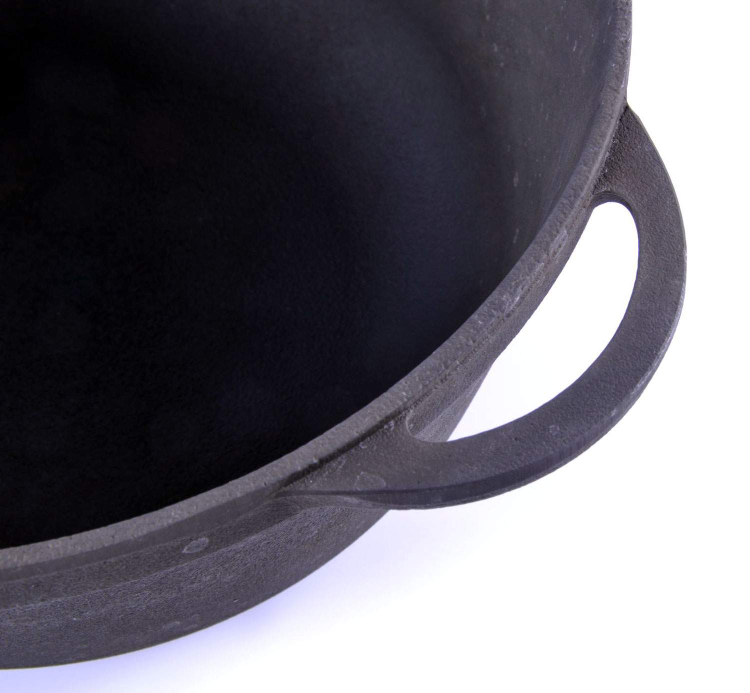 Перед первым использованием чугунную посуду необходимо тщательно вымыть и прокалить с использованием растительного масла или соли.