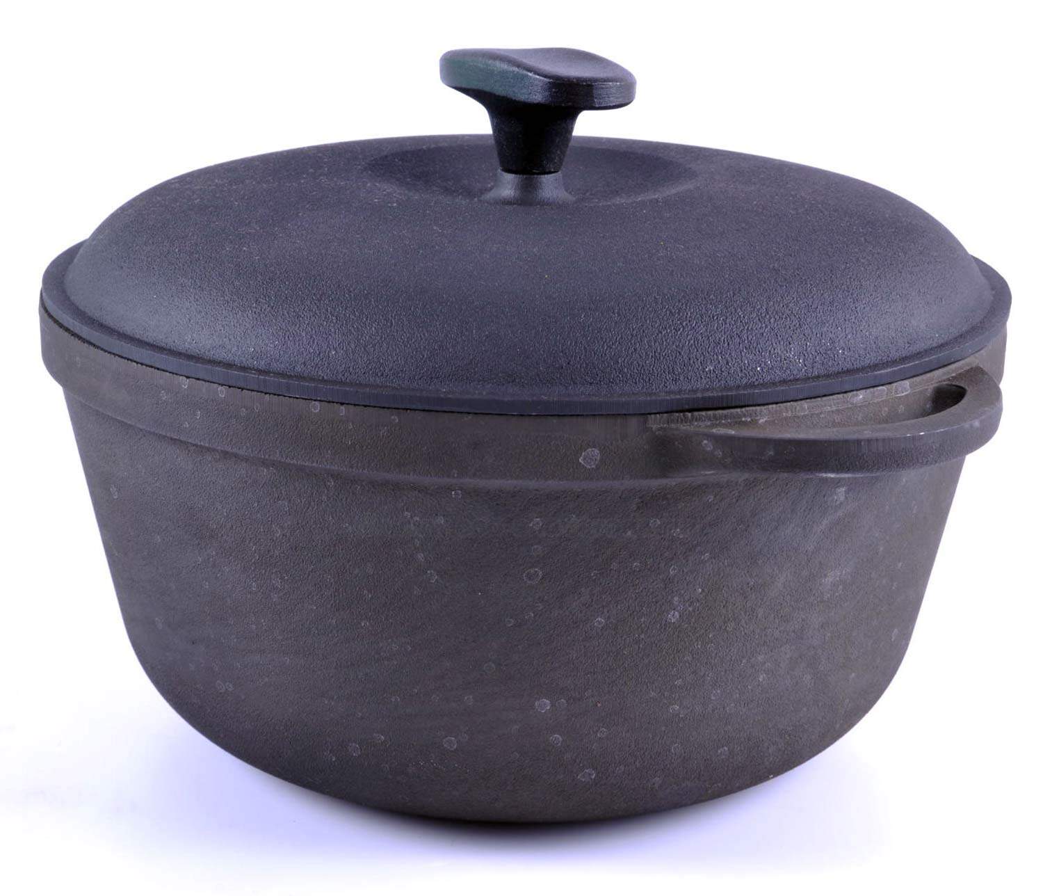 Чугунная посуда универсальна, она подходит для любых плит, включая индукционные и даже позволяет готовить на открытом огне. Соблюдая правила эксплуатации, чугунная посуда будет служить Вам не один десяток лет. Чугун не подвержен деформации, не боится перегрева и механических повреждений.