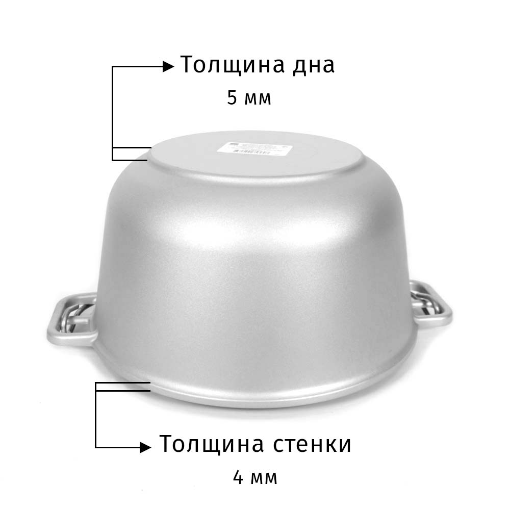 Казан изготовлен из непокрытого литого алюминия, имеет толстое дно и стенки, благодаря этому он не подвержен деформации от температур и обеспечивает равномерный прогрев пищи.