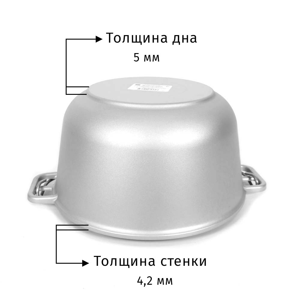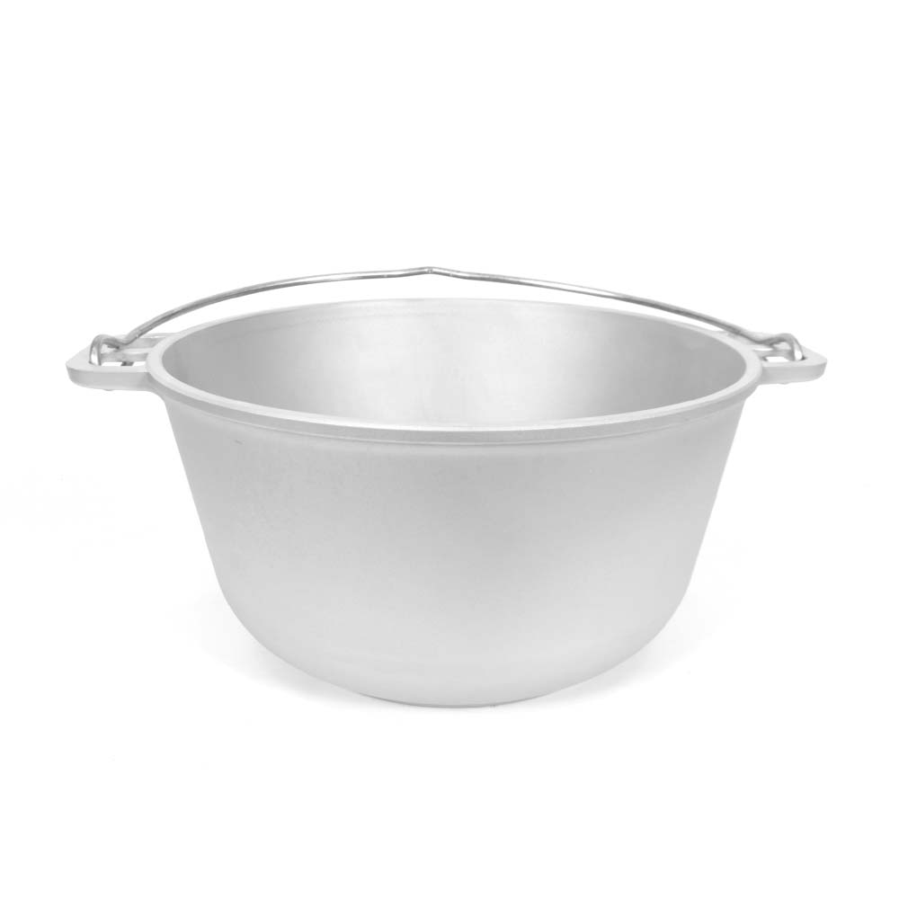 Казан изготовлен из непокрытого литого алюминия, имеет толстое дно и стенки, благодаря этому он не подвержен деформации от температур и обеспечивает равномерный прогрев пищи.