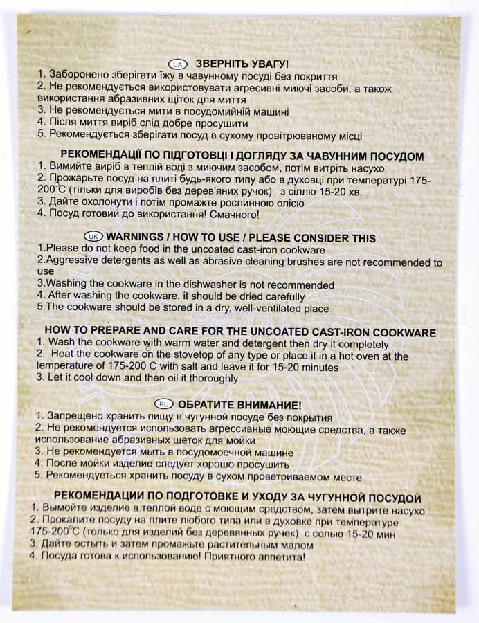 Полезные статьи: Как ухаживать за чугунной посудой, Как правильно прокалить чугунную посуду (сковороду, казан)?, Почему чугун ржавеет и как от этого уберечься?