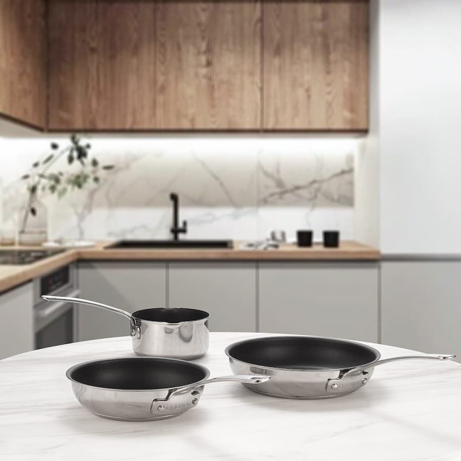 Трехслойная технология: алюминий между двух слоев нержавеющей стали;