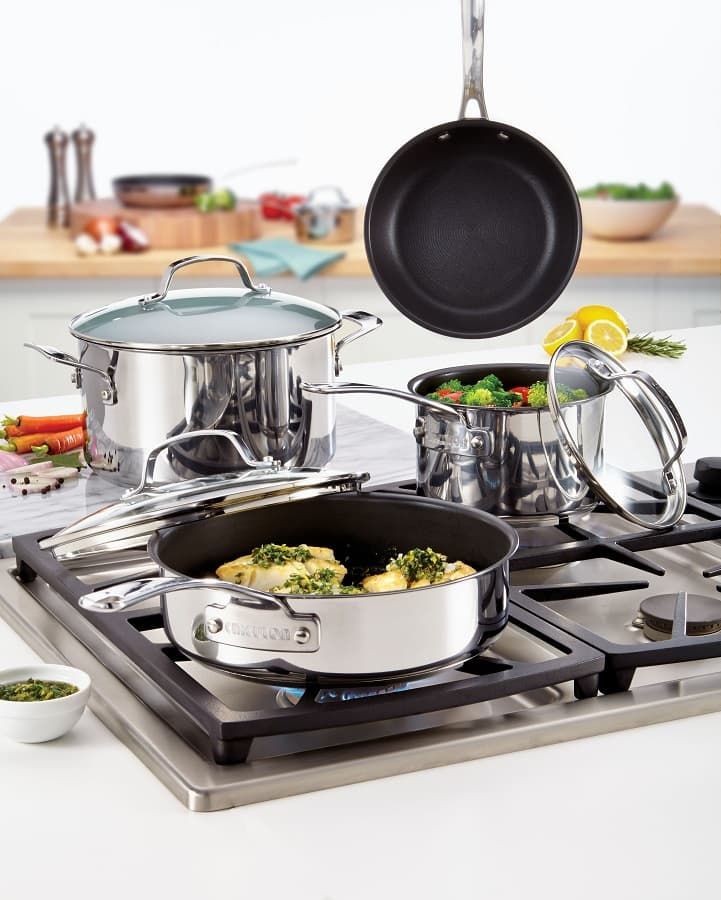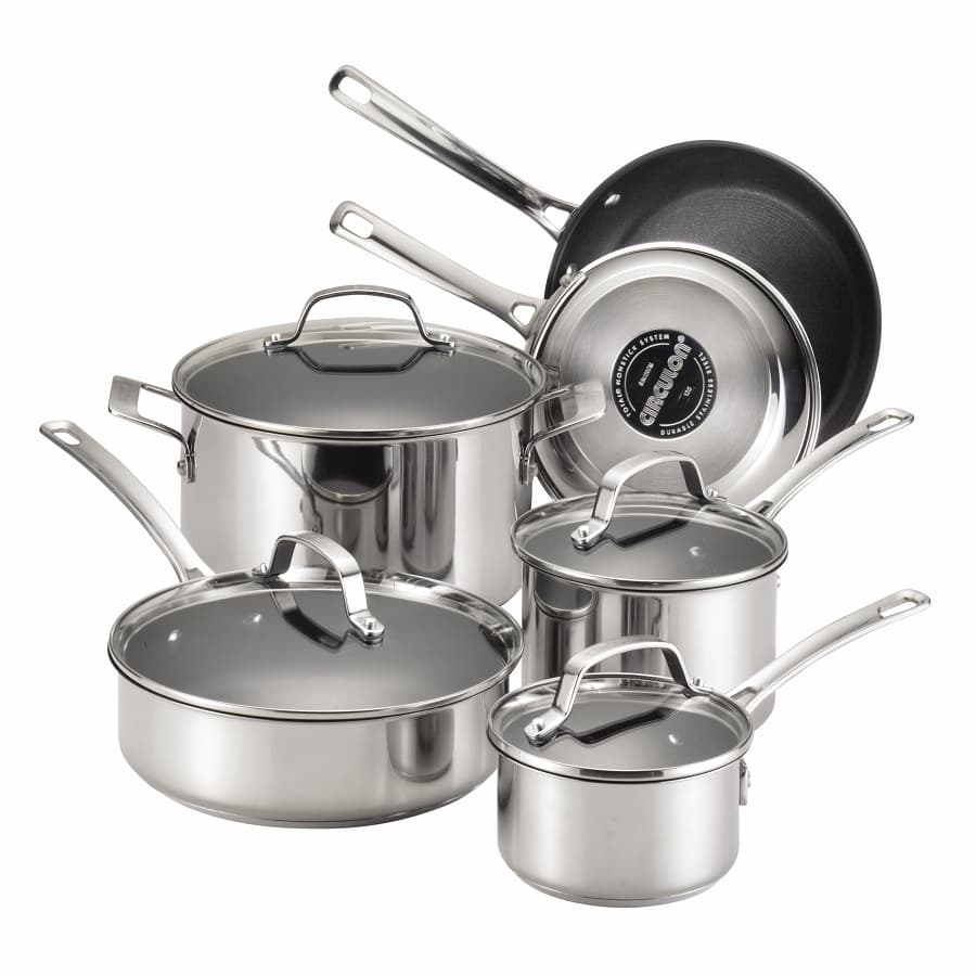 Посуда CIRCULON выполнена из нержавеющей стали с внутренним слоем из алюминия. 3-х слойная технология обеспечивает равномерный нагрев, быстрое приготовление пищи. Дно пятислойное. Есть эргономичные ручки из нержавеющей стали.