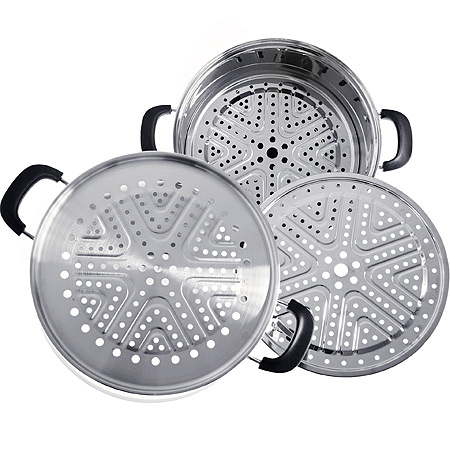 Мантоварка позволит вам одновременно приготовить несколько различных блюд. Она изготовлена из высококачественной нержавеющей стали. Идеально подходит для национальных блюд, таких как манты, пельмени на пару и т.д. Крышка изготовлена из термостойкого стекла и нержавеющей стали. Такая крышка позволяет следить за процессом приготовления пищи без потери тепла. Она плотно прилегает к краю кастрюль, сохраняя аромат блюд. Подходит для использование на всех типах плит, включая индукционные. Подходит для мытья в посудомоечной машине.