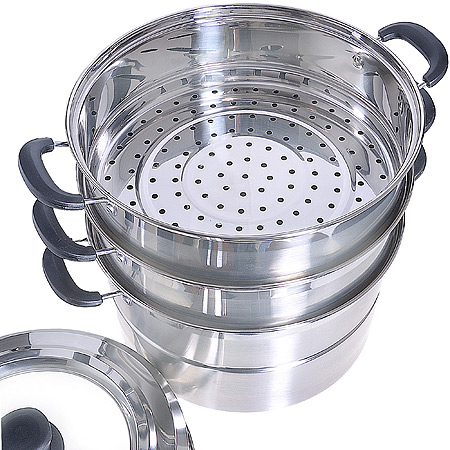 3-х ярусная мантоварка MAYER & BOCH выполнена из высококачественной нержавеющей стали. Мантоварка — это специальная многоуровневая кастрюля с помощью которой можно готовить блюда на пару. Через отверстия в днищах ярусов происходит доступ пара от кипящей воды к приготовляемым продуктам. Идеально подходит для блюд национальной кухни: мант, поз, паровых пельменей и т.п. Кроме этого, на пару можно готовить множество других полезных диетических блюд. Мантоварка оснащена удобными бакелитовыми ручками и стеклянной крышкой, через которую можно наблюдать за процессом готовки. Подходит для всех типов плит, кроме индукционных. Подходит для мытья в посудомоечной машине.