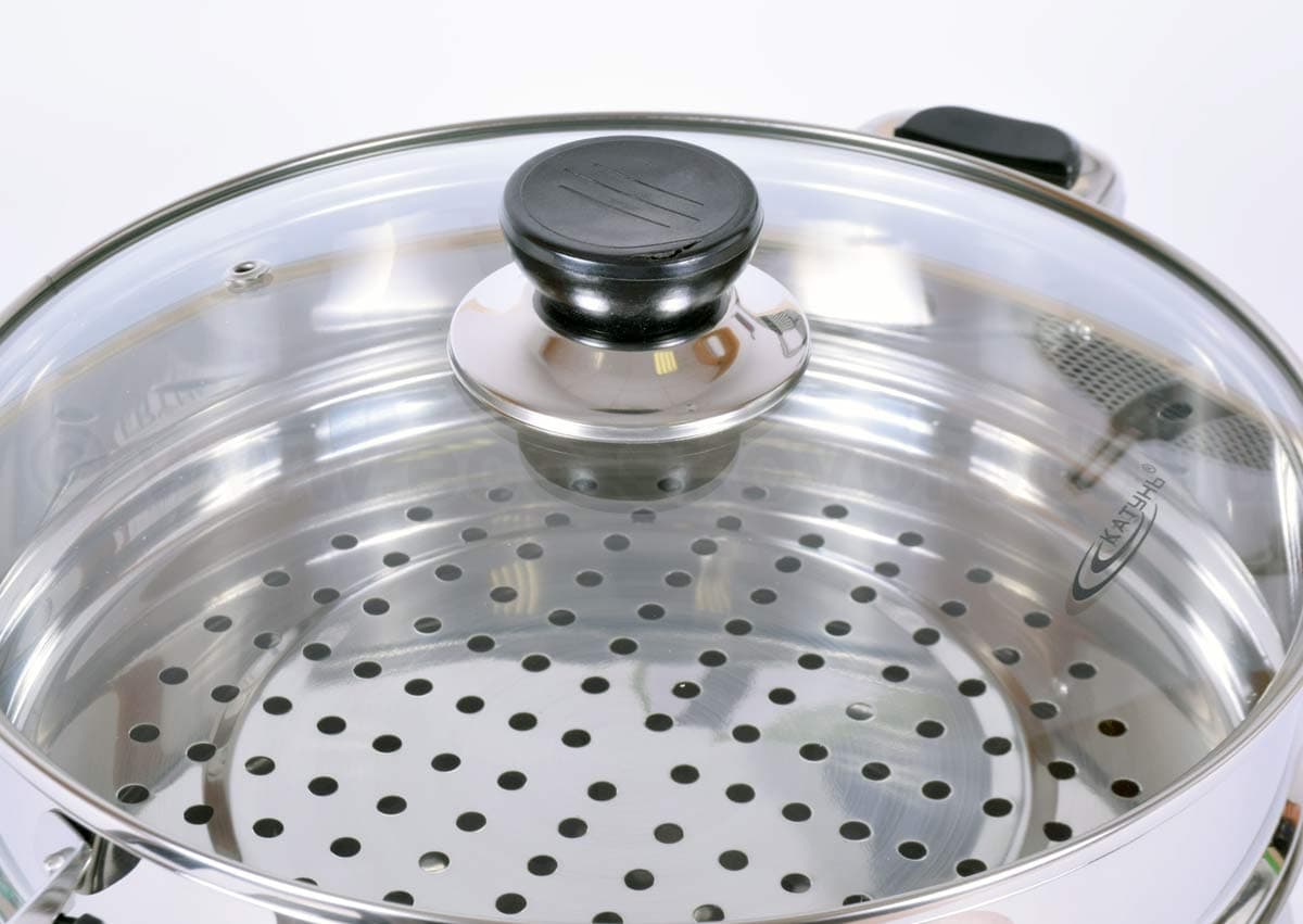 - В ассортименте ТМ Катунь представлены кастрюли, мантоварки, формы для выпечки, чайники, кухонные приборы, тазы, миски и другие изделия из нержавеющей стали.