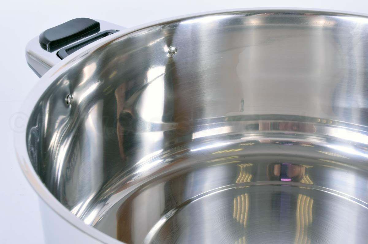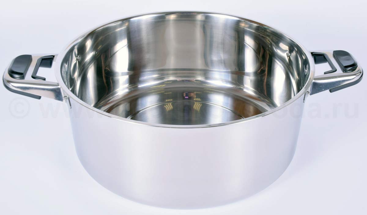 - Кастрюли изготавливаются с трехслойным аккумулирующим дном. В дно встроен алюминиевый диск, который хорошо проводит тепло;