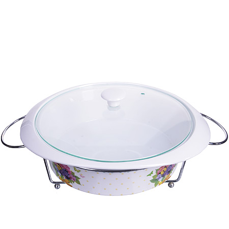 Мармит керамический 1,9л/30см MAYER & BOCH Цветы на подставке, 2 подсвечника, стеклянная крышка