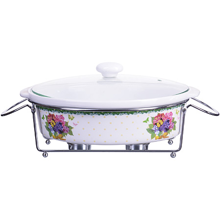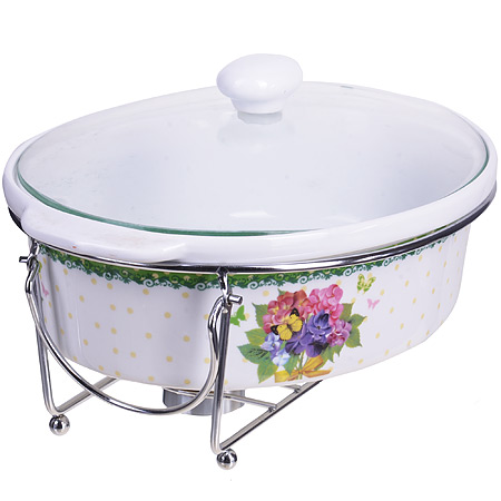Мармит керамический 1,9л MAYER & BOCH Цветы на подставке, 2 подсвечника, стеклянная крышка