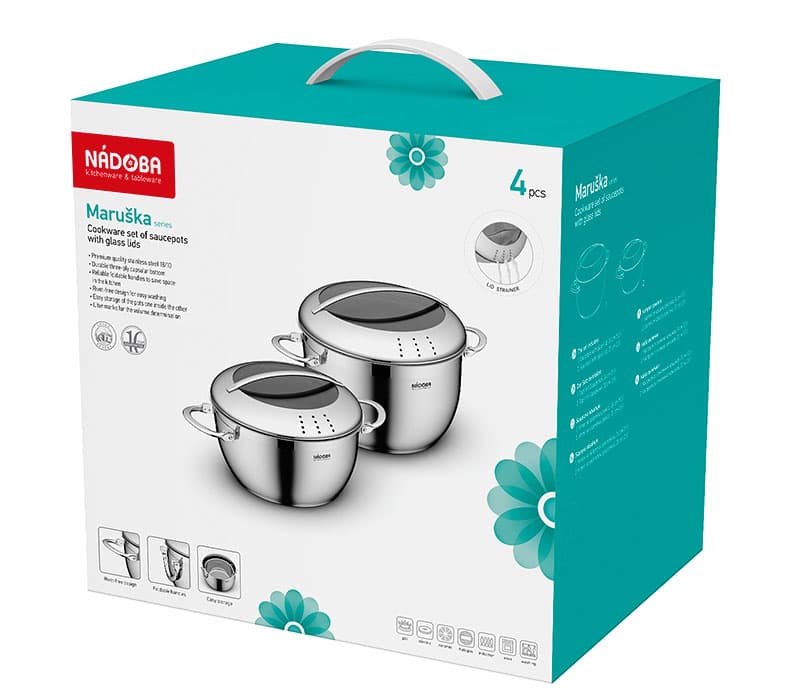 Компания NADOBA использует только экологичные материалы, соответствующие строгим европейским стандартам. Долговечность и надежность продукции подтверждается длительной гарантией. И конечно же - эксклюзивный дизайн посуды не оставит Вас равнодушным!