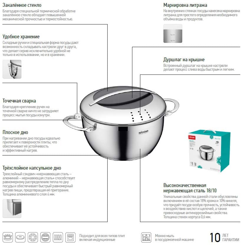 - 10 лет гарантии на посуду из нержавеющей стали серии Maruska от NADOBA.