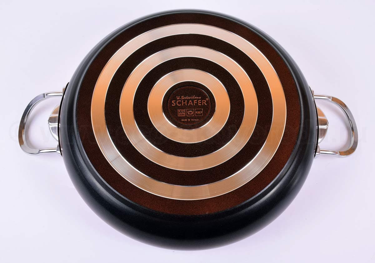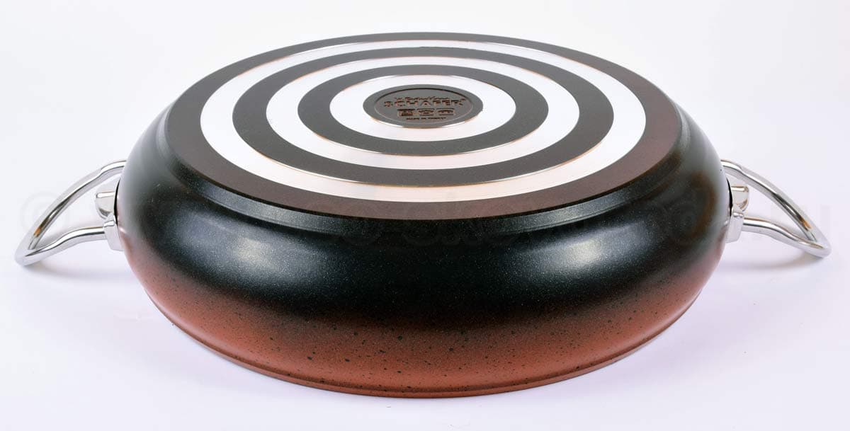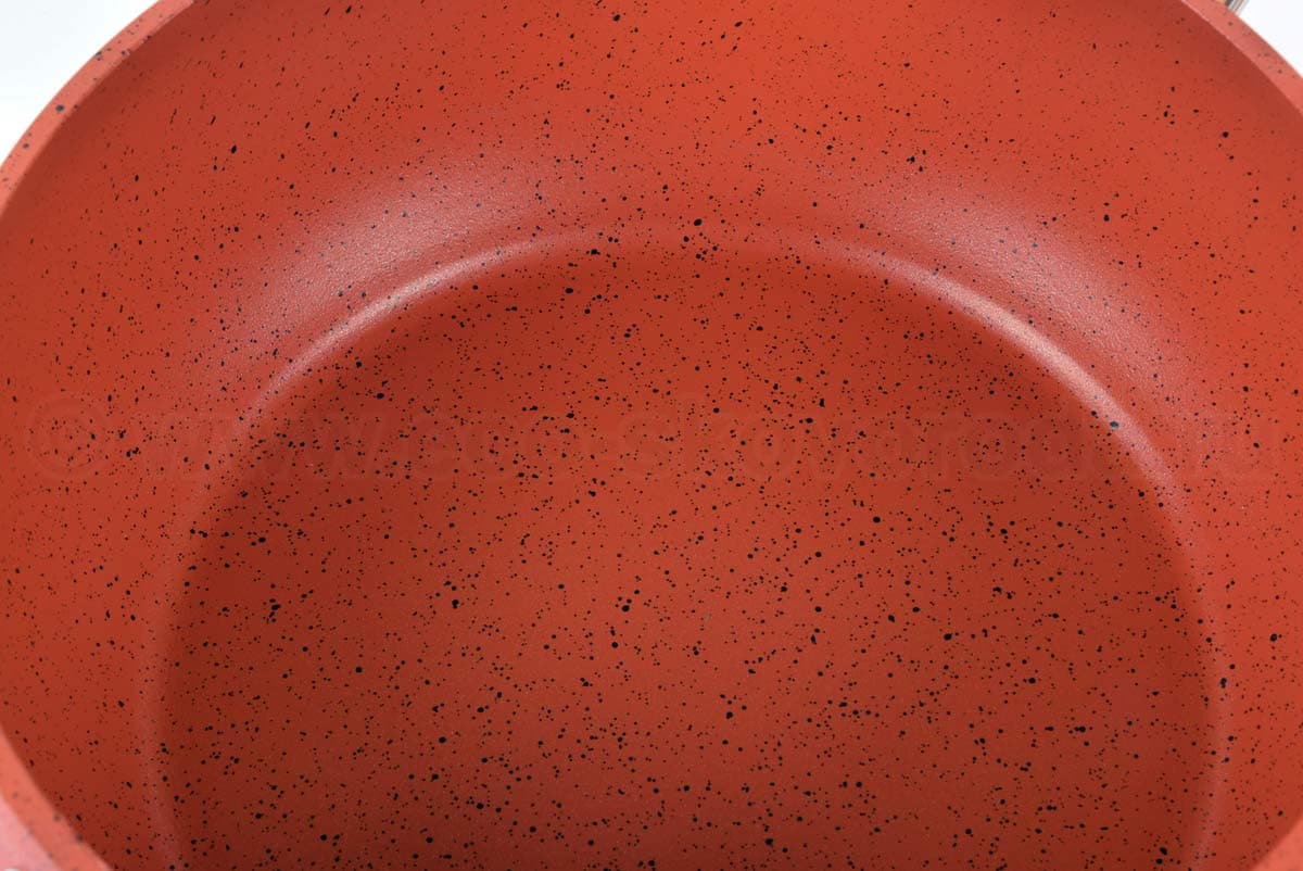 Покрытие не содержит PFOA, кадмий и свинец и полностью безопасно для здоровья человека. Корпус из литого алюминия обеспечивает равномерный нагрев всей поверхности посуды и не деформируется при нагревании.
