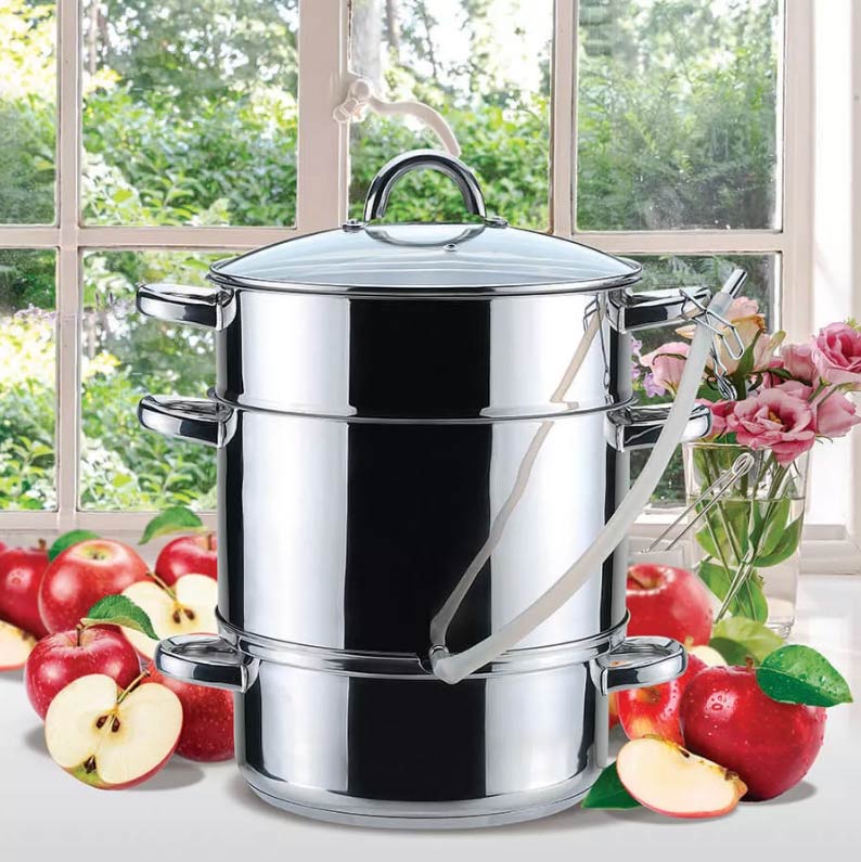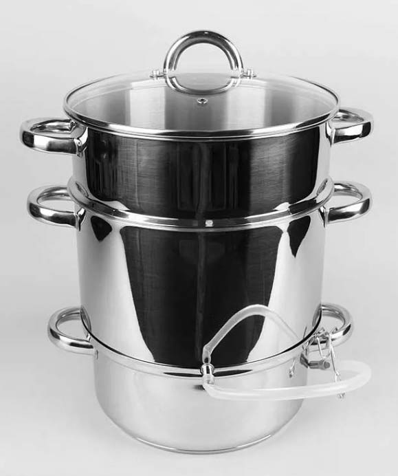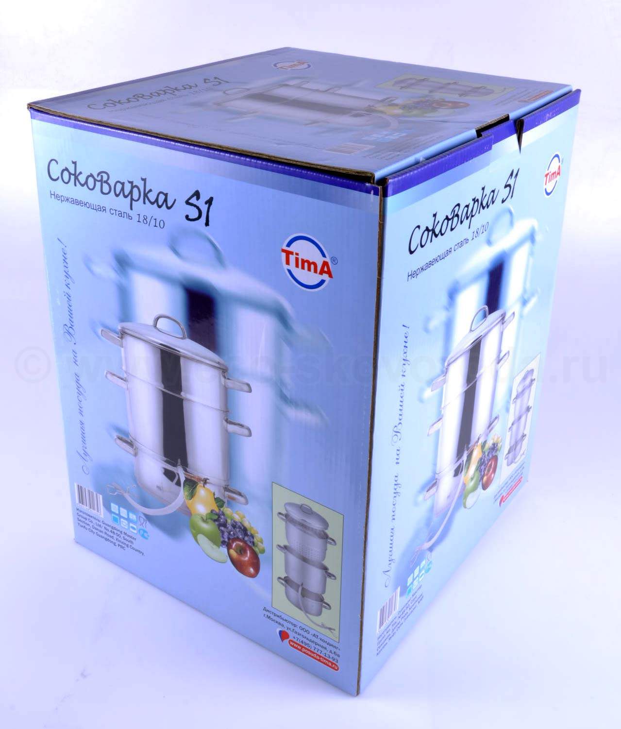 Соковарка ТИМА предназначения для получения сока из фруктов, ягод и овощей. Она изготавливается из нержавеющей стали 18/10. Соковарка подходит к любым типам плит, включая индукционные. Соковарку ТИМА можно мыть в посудомоечной машине.