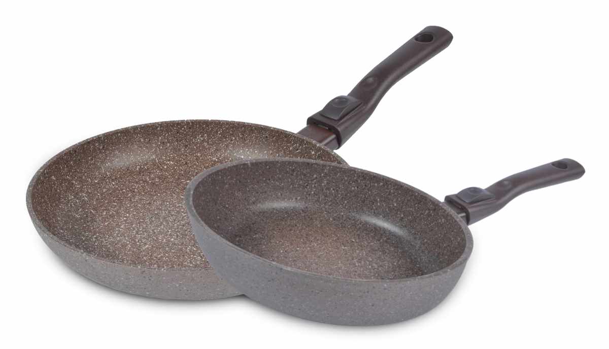 Сковороды и сотейники производятся на базе серии Titan Granit и имеют 6,7 миллиметровую толщину дна. Ковш и кастрюли выполнены на базе серии Petra с толщиной 4мм. Ручки сделанные по технологии Soft-Touch и обладают противоскользящими свойствами, не нагреваются даже при длительном использовании.