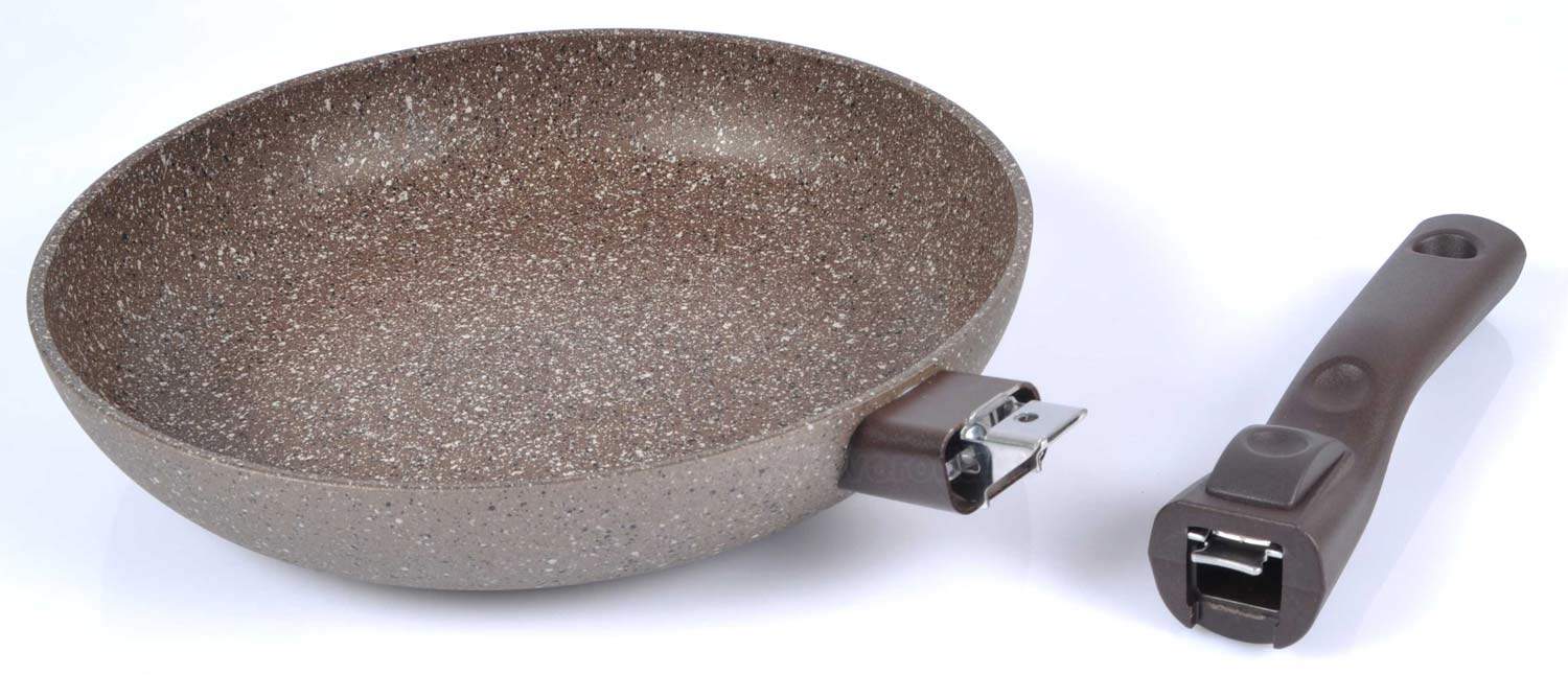 Сковорода со съемной ручкой 26см диаметр дна — 19cм, высота стенки — 5см, толщина дна — 7.5мм, толщина стенки — 4.5мм;