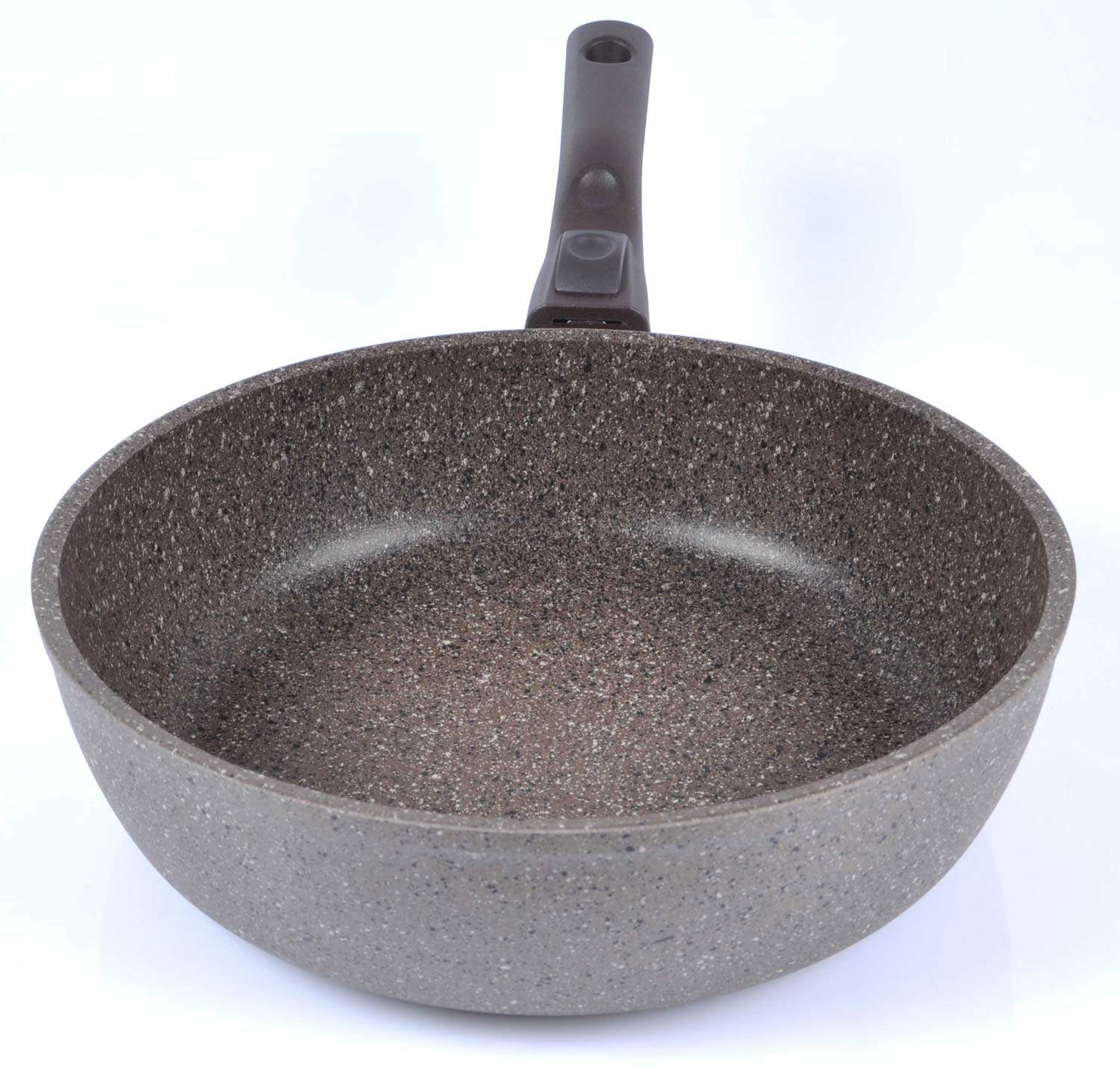 Каменное покрытие является одним из самых прочных и долговечных среди покрытий, не утрачивает свои антипригарные свойства в течение всего срока службы посуды, устойчиво к механическим повреждениям.