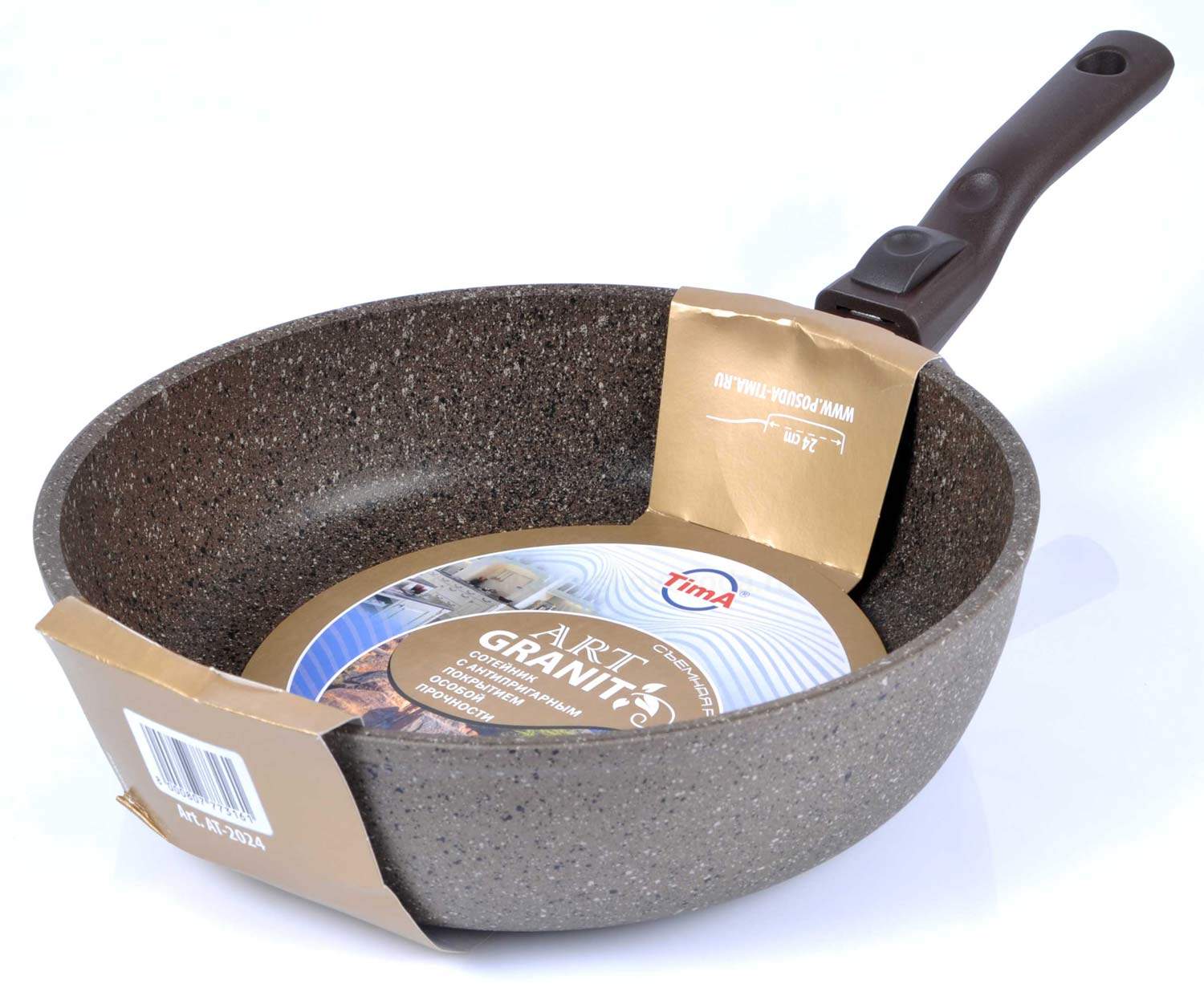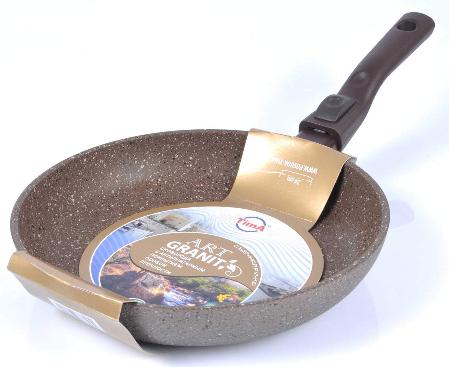 Отдельно стоит отметить ручки, используемые в серии TIMA/TVS Art Granit Induction. Ручки сделаны по запатентованной технологии Soft-Touch (мягкое прикосновение) из бакелита. Ручки из такого материала приятны на ощупь (напоминают силикон), они удобно сидят в руке без риска выскользнуть и не нагреваются при приготовлении.
