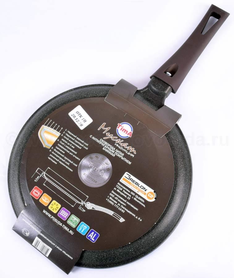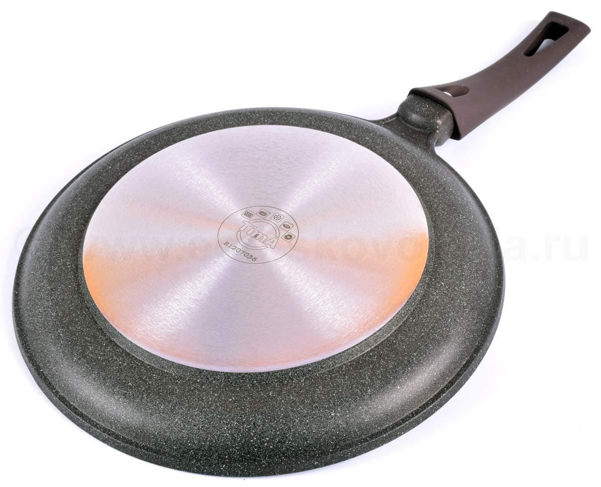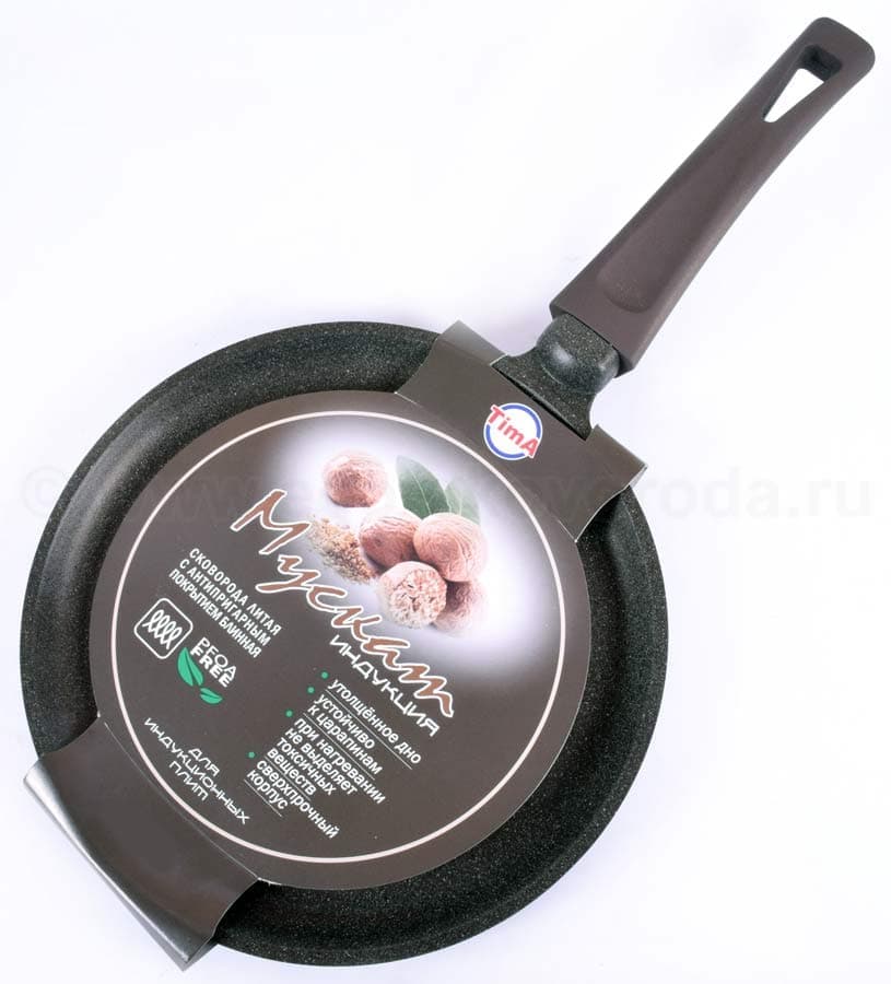 - Достоинства: Очень хорошее антипригарное покрытие, стойкое к царапинам. Подходит и для тушения и для жарки.