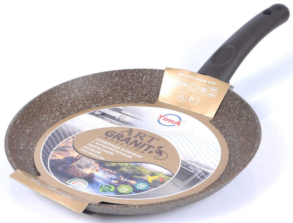 - Недостатки: Не вижу. Если только придираться. Кстати, на сайте написано- италия, на самом деле на упаковке указано другое. На сайте бренд tvs art, а на самом деле этого бренда на упаковке сковоородки не нашла, там значился другой бренд Tim. . . Первое время чувствовала себя обманутой. ))).