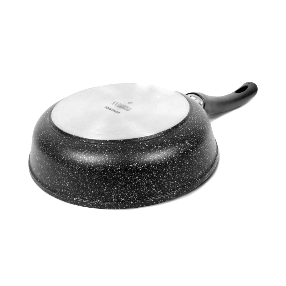 Корпус сковороды из литого алюминия не подвержен деформации (в отличие от штампованного) и гарантирует равномерный нагрев.