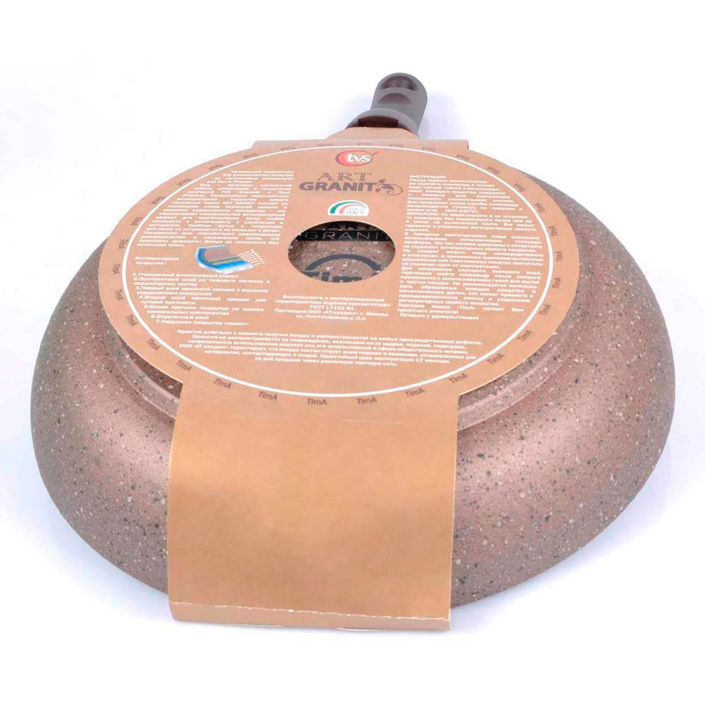 Серия TIMA/TVS Art Granit Induction — это превосходное качество посуды с одним из самых прочных и долговечных каменным антипригарным покрытием - Durit Select Pro. Благодаря 7-слойной структуре на таком покрытии можно пользоваться любыми аксессуарами, в том числе и металлическими (не острыми).