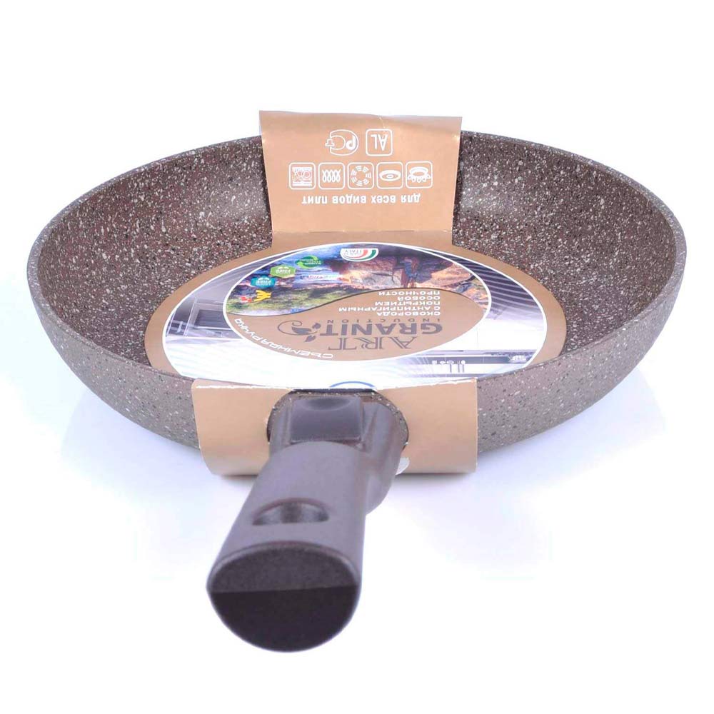 Каменное покрытие является одним из самых прочных и долговечных среди покрытий, не утрачивает свои антипригарные свойства в течение всего срока службы посуды, устойчиво к механическим повреждениям.