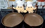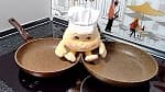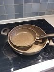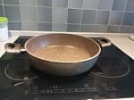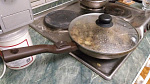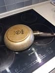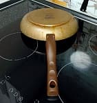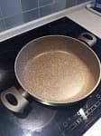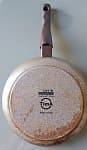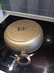 Как можно увидеть по фото, сковорода не деформировалась. Многослойная конструкция позволяет ей равномерно распределять жар по всей площади посуды, не делая резких перепадов температур внутри стенок и дна. Данное обстоятельство означает, что различные деформации (в том числе и вспучивание) сковородам этой фирмы не грозят.
