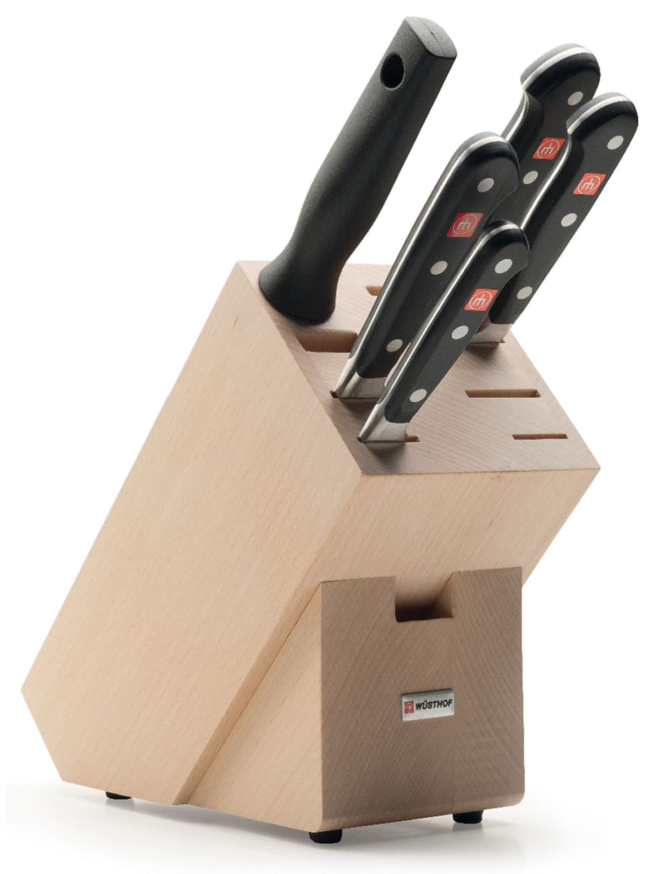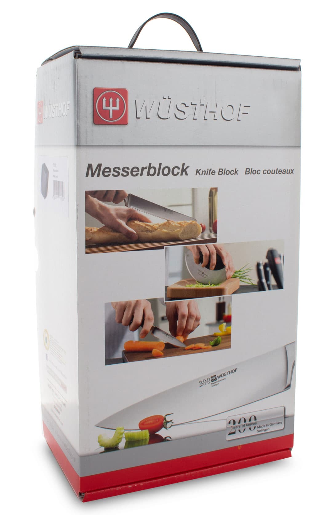 Бренд из Золингена Wuesthof выпускает широкую линейку подставок для ножей. Изготавливает их из бука, поскольку это твердая порода, которая со временем не претерпевает деформаций.