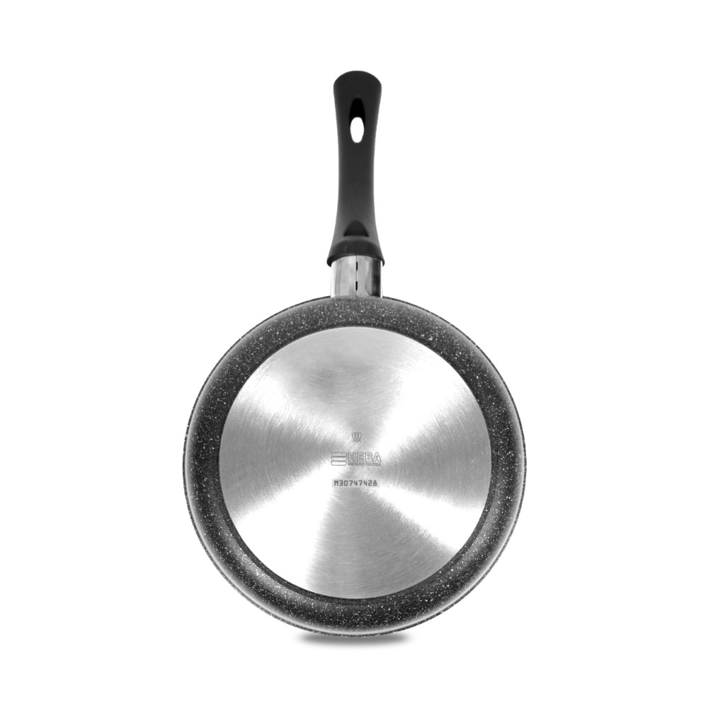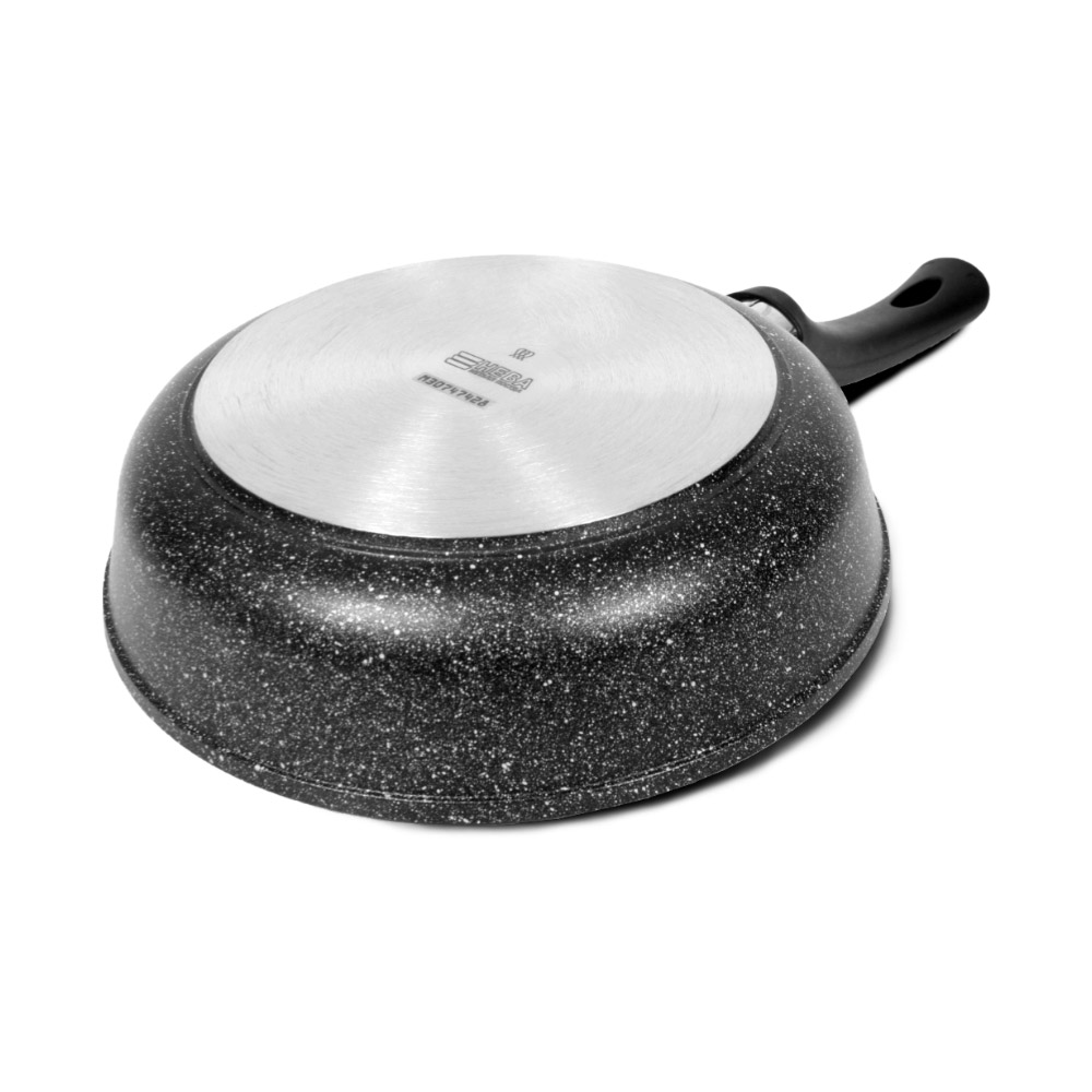 Корпус сковороды из литого алюминия не подвержен деформации (в отличие от штампованного) и гарантирует равномерный нагрев.