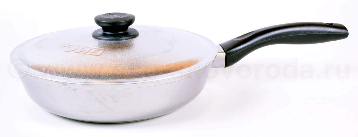 Серия БИОЛ Блеск сделана из высококачественного алюминия без покрытия. Подходит ко всем типам плит, кроме индукционных. Можно использовать в посудомоечной машине. Произведена в Украине и имеет гарантию 1 год. В комплекте к сковороде входит алюминиевая крышка.