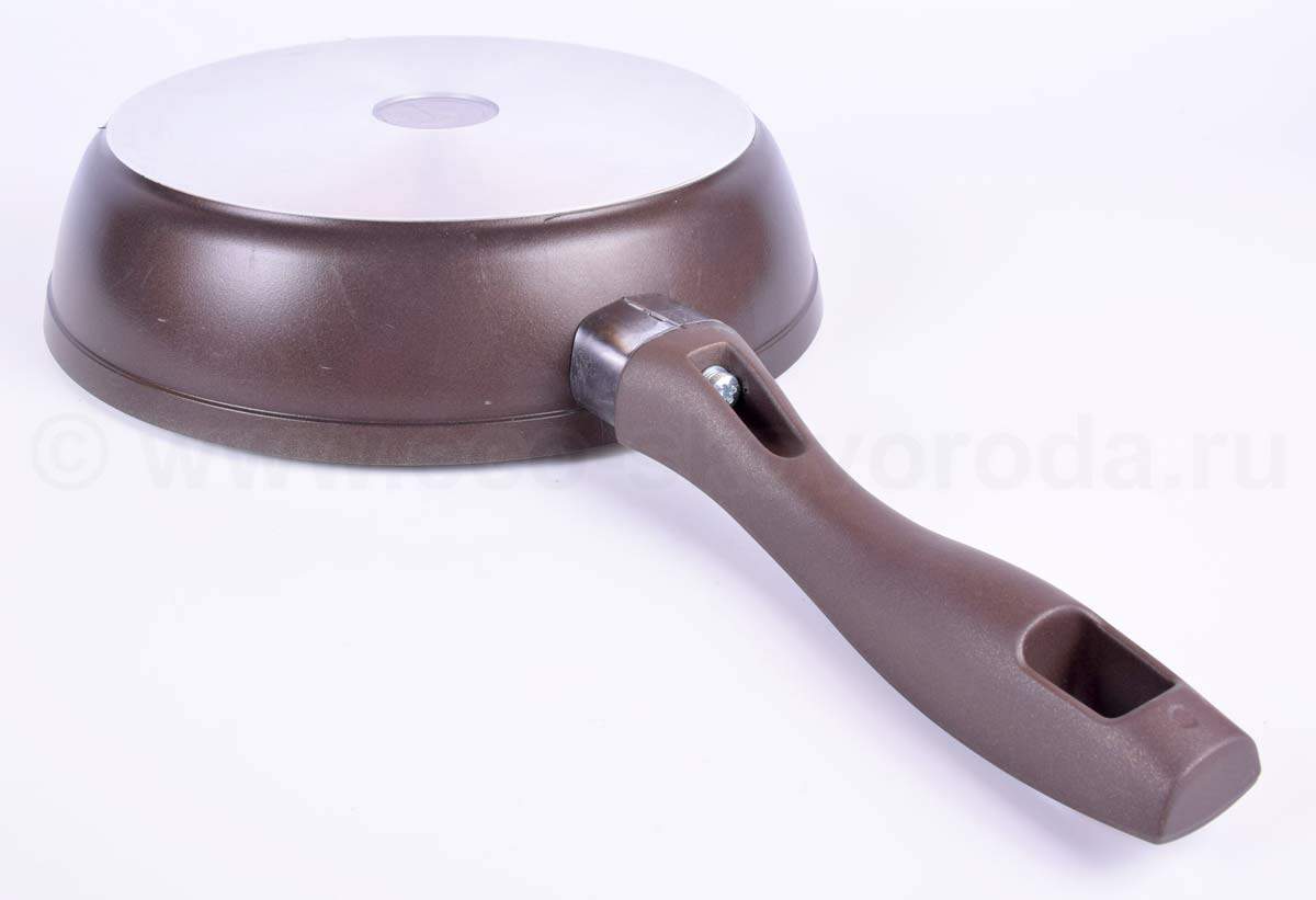 Посуда обладает антипригарным покрытием: пища не будет прилипать, легко сделать золотистую корочку при жарке, легко мыть.