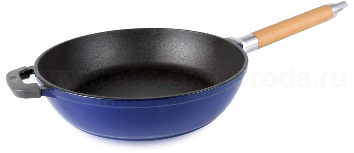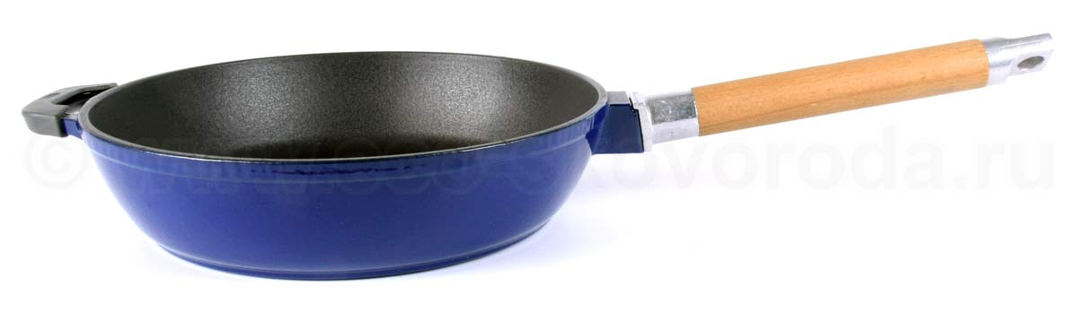 Сковорода 24см чугунная БИОЛ с эмалированным покрытием, съемная ручка, синяя, Украина