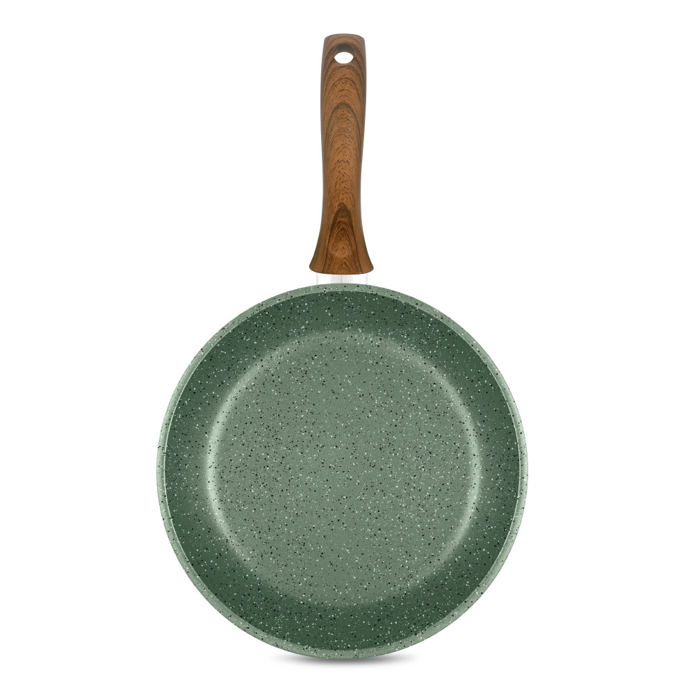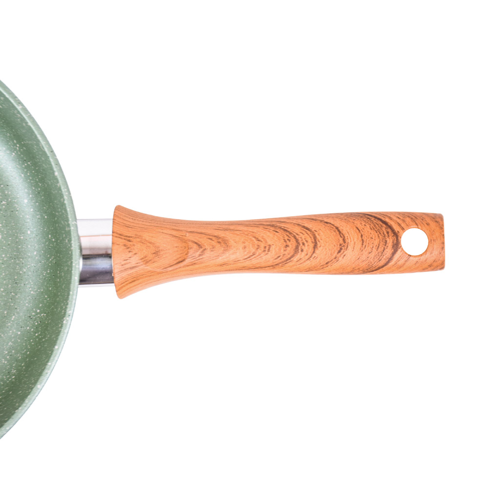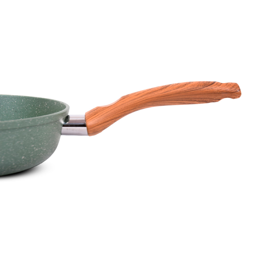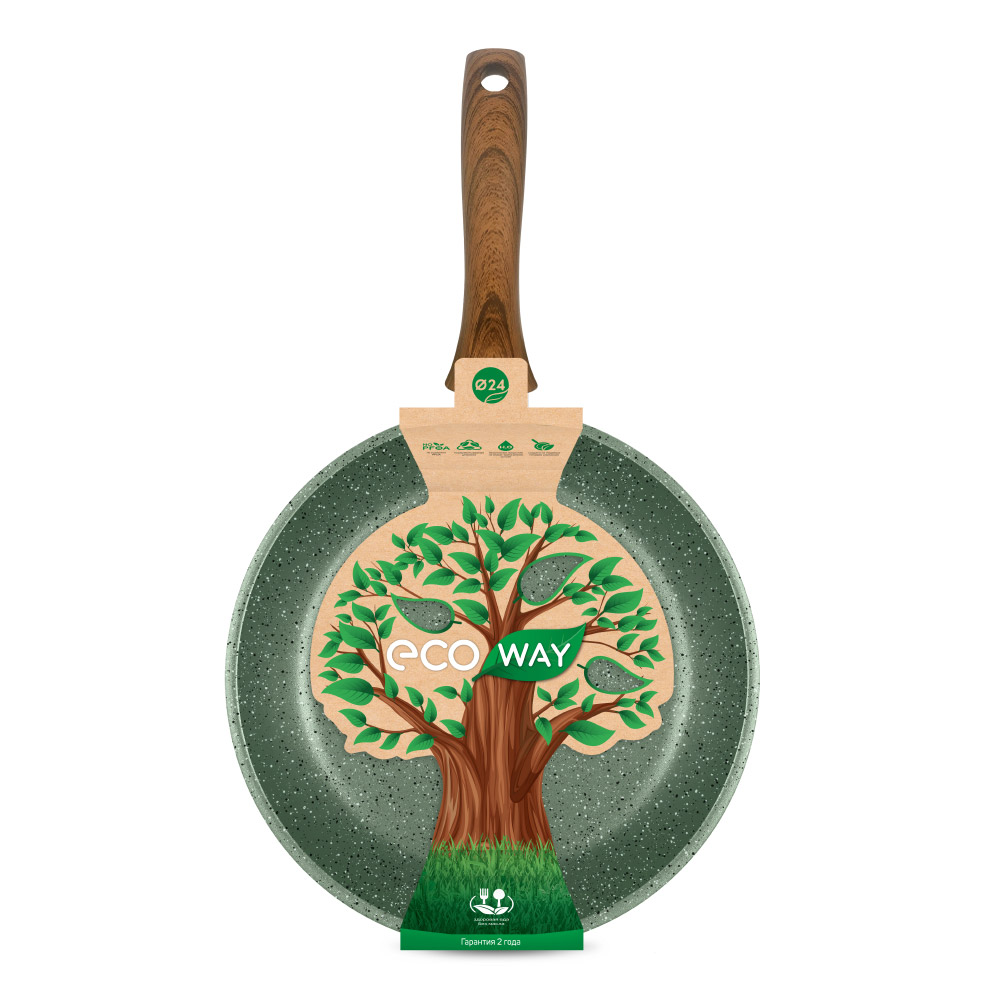 Серия сковород Eco Way выполнена в натуральном зеленом цвете и комплектуется эргономичной ручкой с имитацией дерева, подходит для ежедневного использования, создана из материалов высшего класса безопасности на новейшем оборудовании. Многослойное высококачественное антипригарное покрытие позволяет готовить без масла или с минимальным количеством масла и сохранять натуральный вкус продуктов. Подходит для использования в посудомоечной машине.