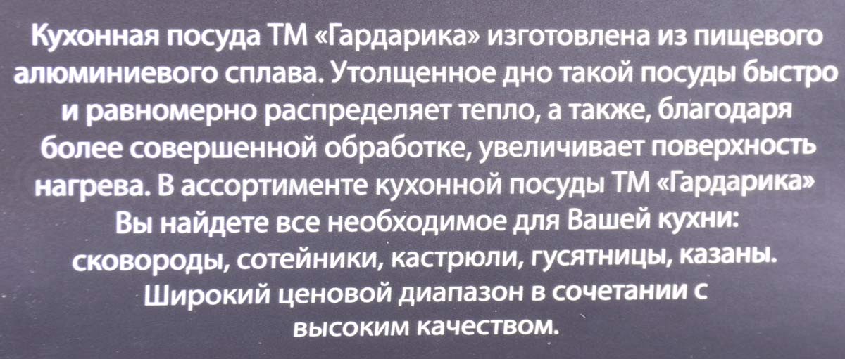 При производстве посуды ГАРДАРИКА применяется немецкое антипригарное покрытие Greblon C2+ на основе PTFE.