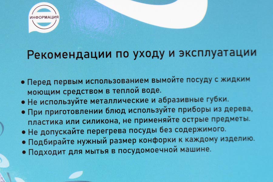 - Перед первым использованием вымойте посуду в теплой воде с жидким моющим средством;