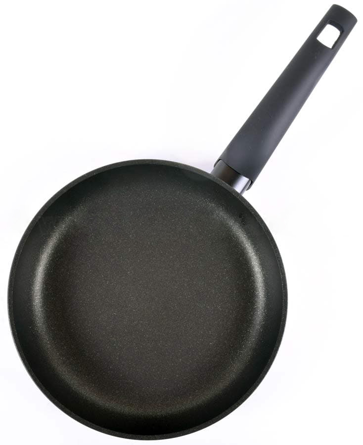 Сковороды укомплектованы удобными эргономичными съемными или фиксированными ручками, которые идеально лежат в руке. В каждой ручке есть отверстие для хранения посуды в повешенном состоянии.