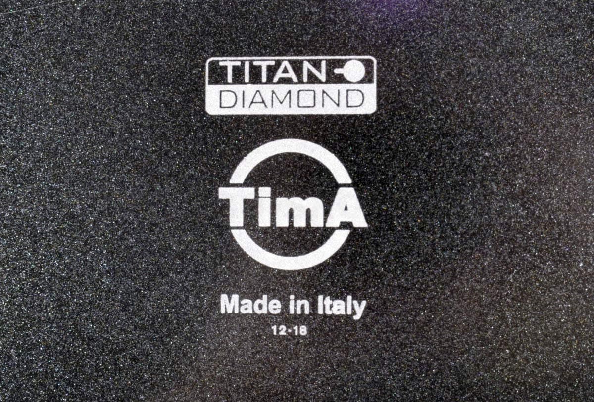 TIMA TITAN DIAMOND — это новая серия экологичной итальянской посуды с титановым антипригарным покрытием, которая пришла на замену уже всем полюбившейся TIMA TITAN GRANIT. В отличие от предыдущей серии, серия TITAN DIAMOND также выполнена из прочного кованного алюминия, но дополнительно получила алмазное напыление, что придаёт усиленную прочность и долговечность.