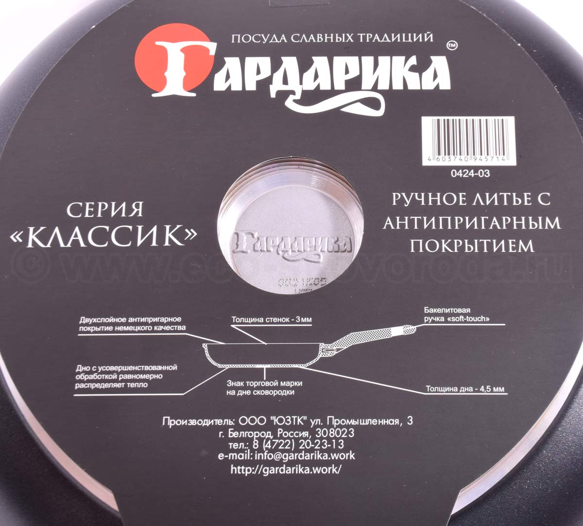 При производстве посуды ГАРДАРИКА применяется немецкое антипригарное покрытие Greblon C2+ на основе PTFE.