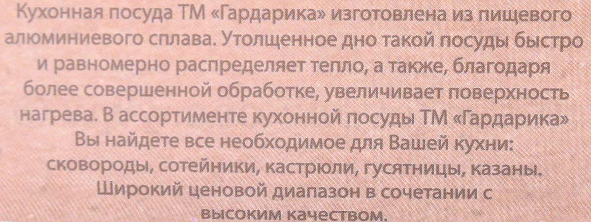 При производстве посуды ГАРДАРИКА применяется немецкое антипригарное покрытие Greblon C2+ на основе PTFE.