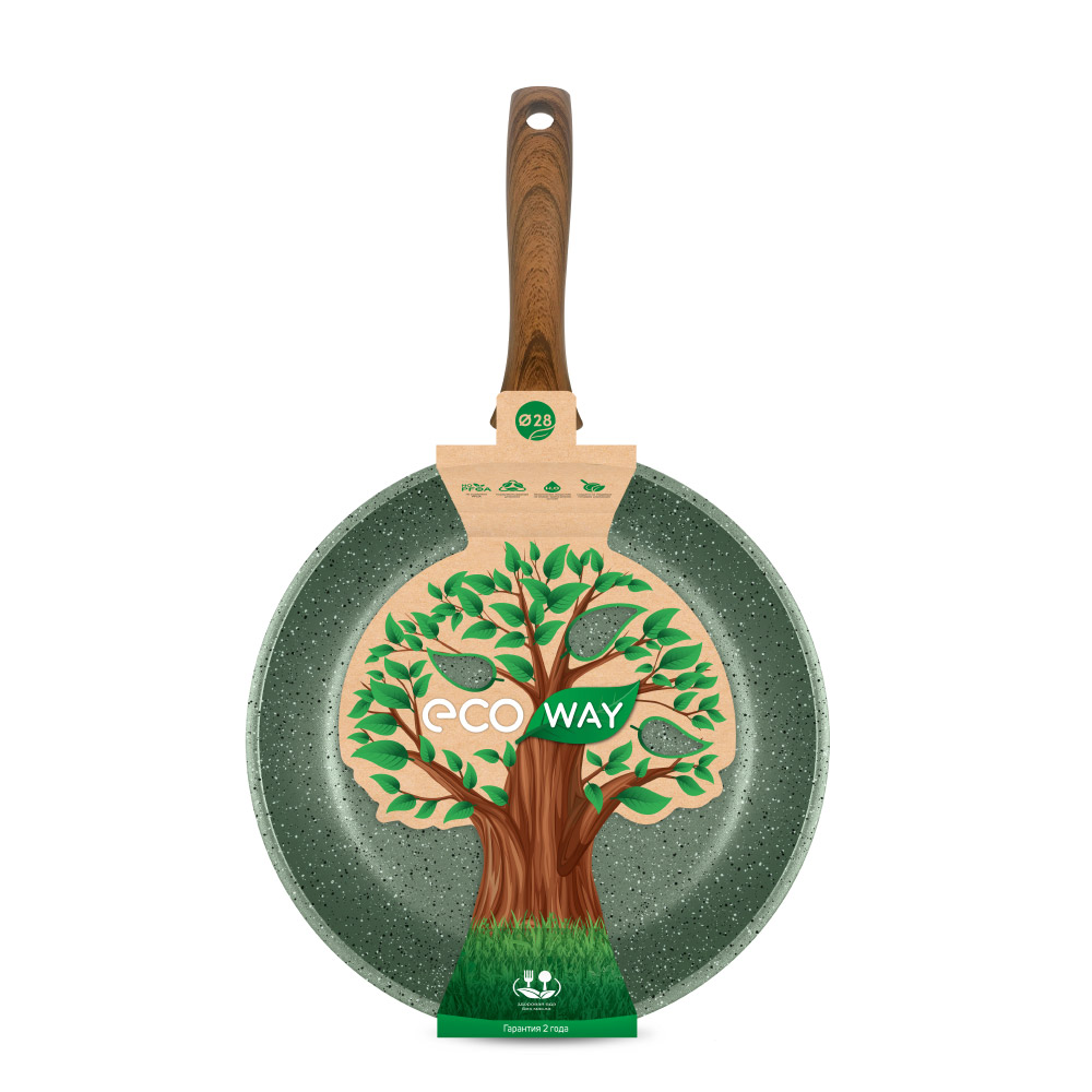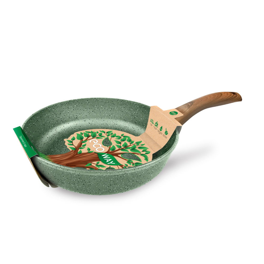 Серия сковород Eco Way выполнена в натуральном зеленом цвете и комплектуется эргономичной ручкой с имитацией дерева, подходит для ежедневного использования, создана из материалов высшего класса безопасности на новейшем оборудовании. Многослойное высококачественное антипригарное покрытие позволяет готовить без масла или с минимальным количеством масла и сохранять натуральный вкус продуктов. Подходит для использования в посудомоечной машине.