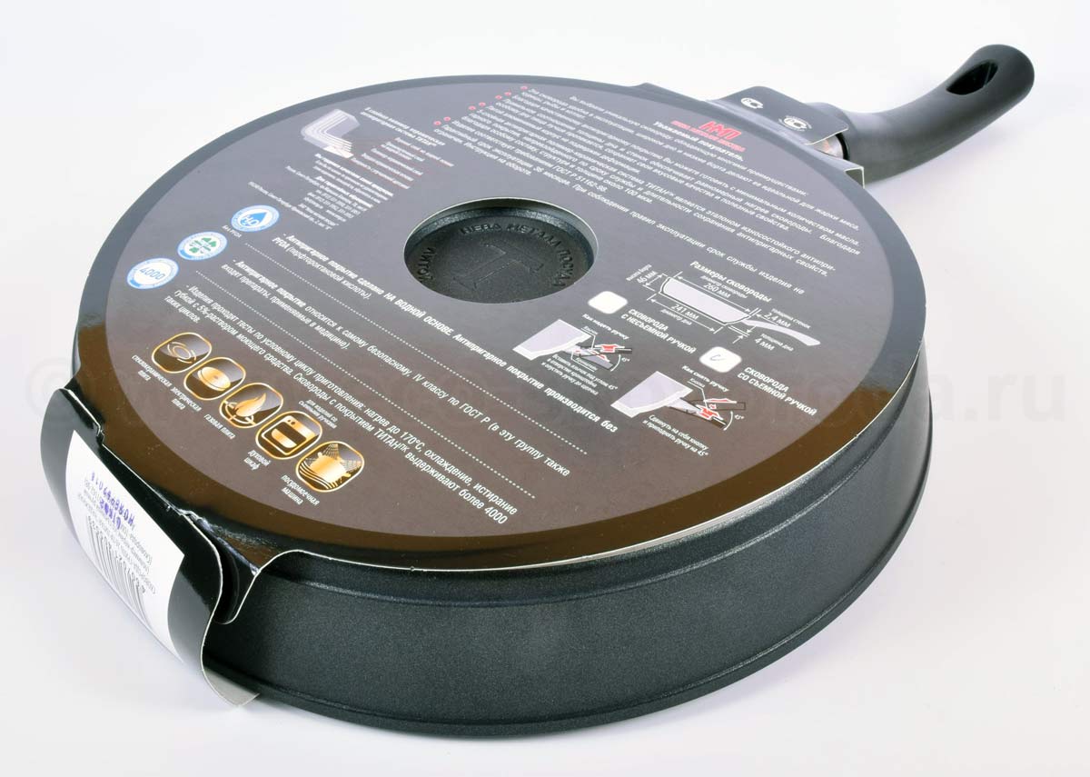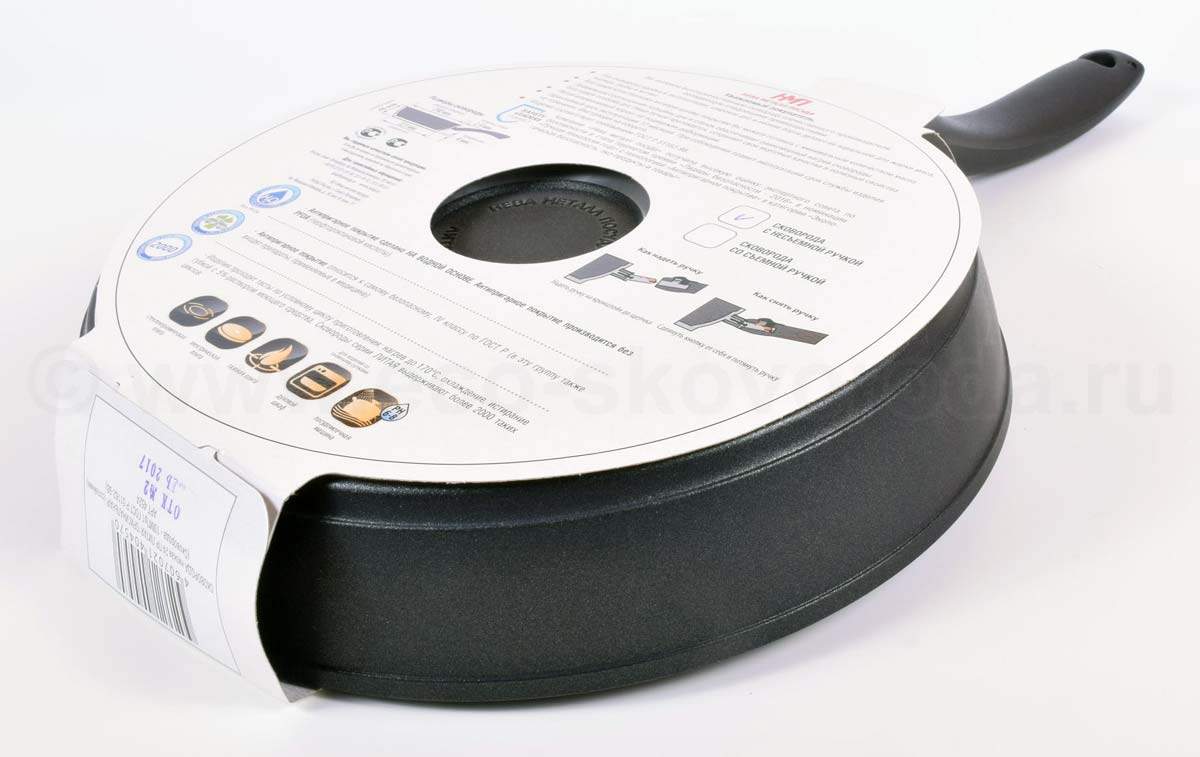 • Достоинства: За длительное время эксплуатации покрытие как новое, мелкие царапины не влияют на функциональность. Сьемная ручка позволяет после обжарки продуктов, ставить их в духовой шкаф для получения румяной корочки.